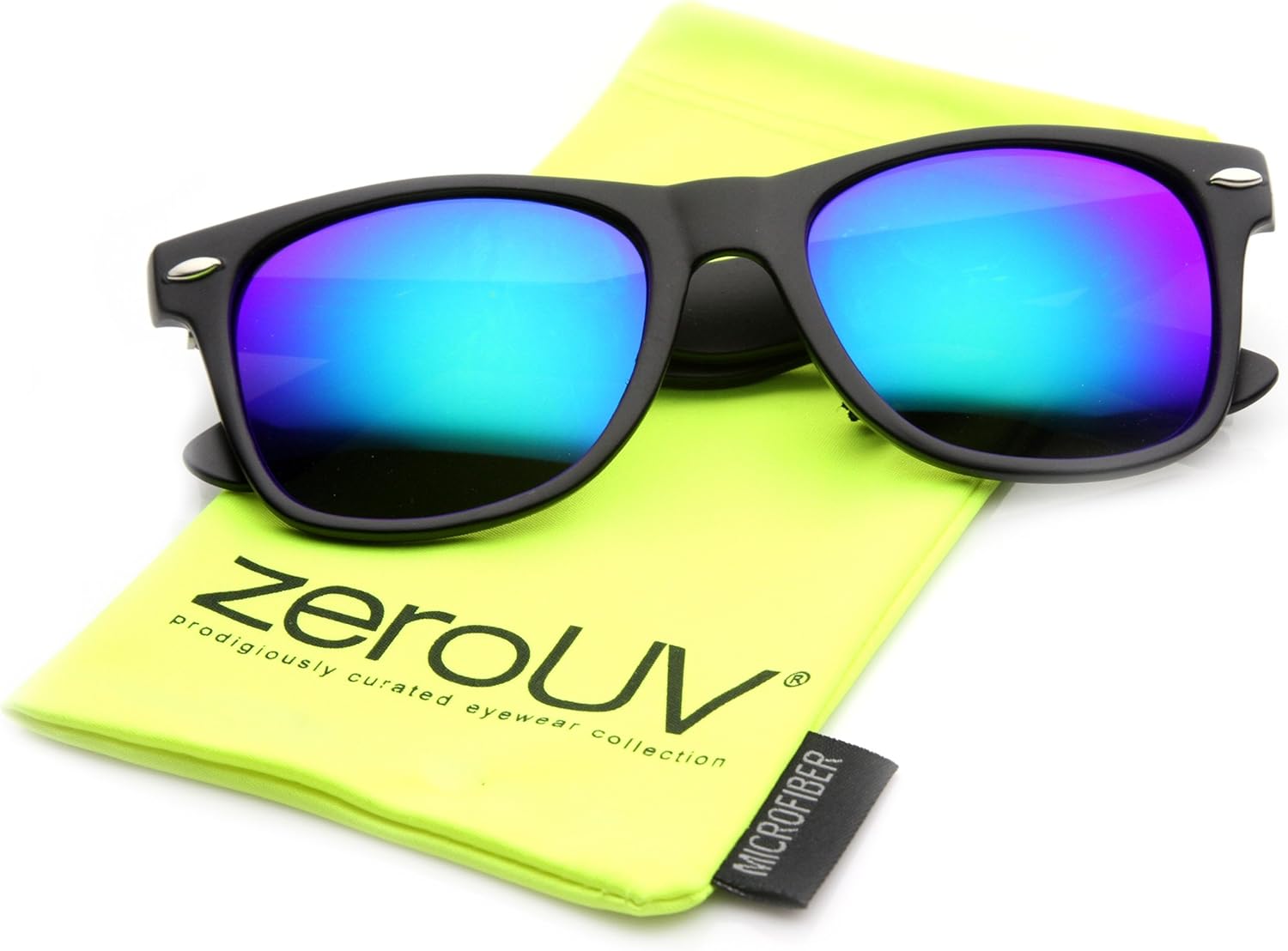zeroUV Flat Matte Reflective Flash Color Lens Large Horn Rimmed Style Sunglasses - UV400 (Black Midnight) image 1 of 5 B005QG5314
