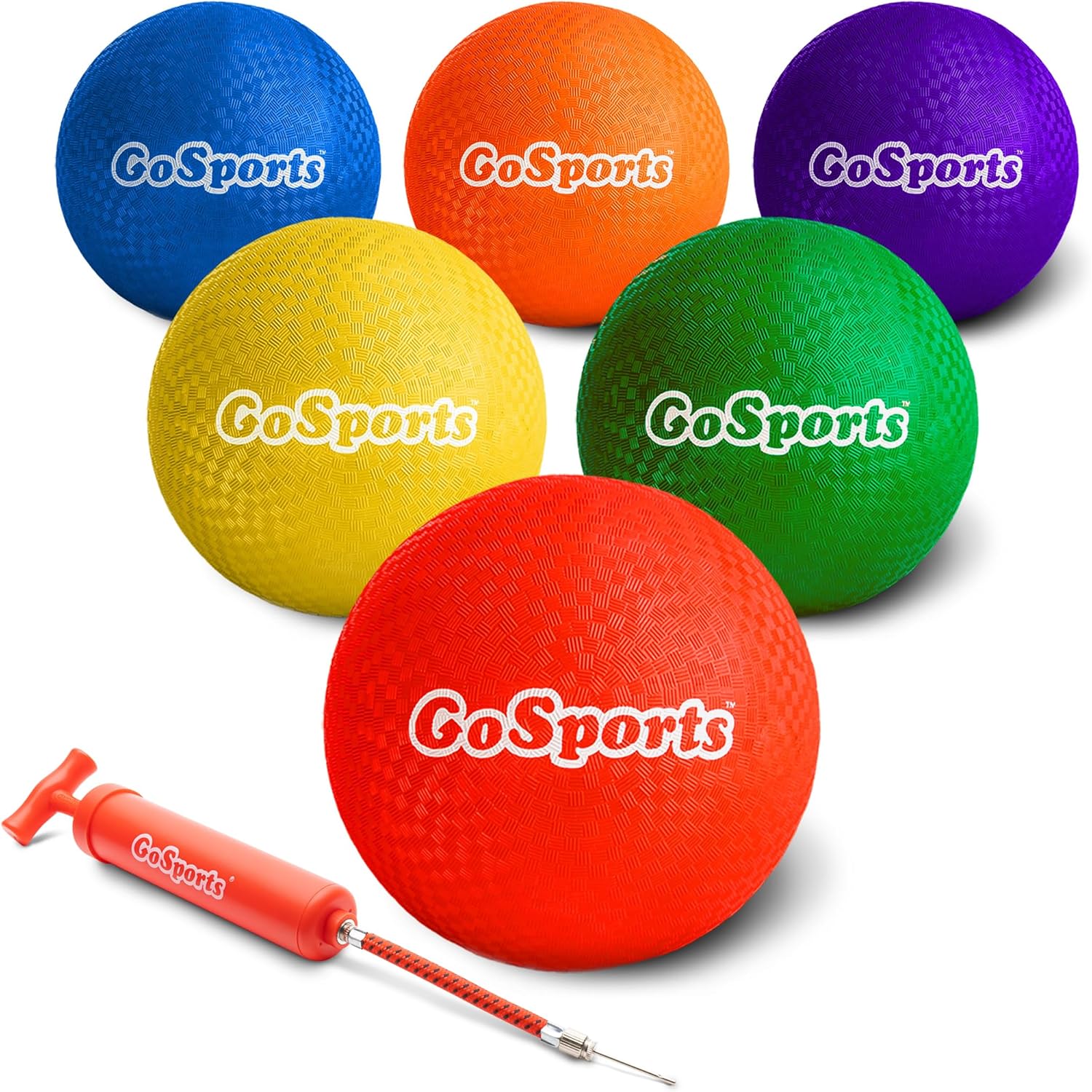 6 PACK: Includes six 8.5 in rubber playground balls, mesh carry bag, and air pump