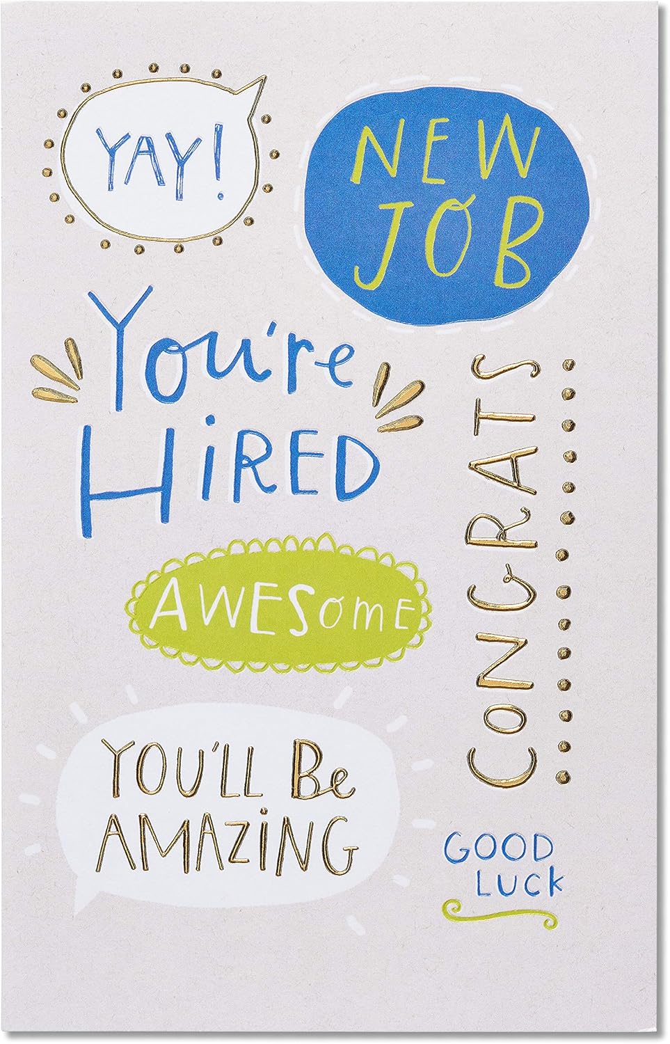 A blue and green motif is accented with gold foil embellishments to let them know you're excited about their new job