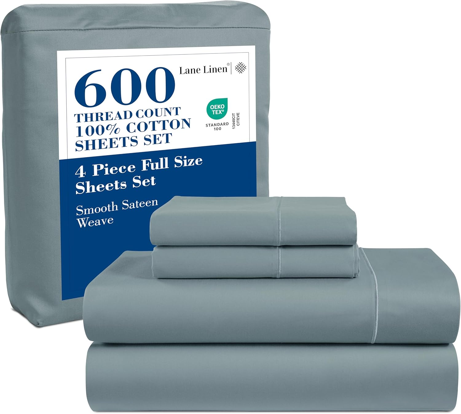HIGH THREAD COUNT FULL SHEET SET: Lane Linen's 600 Thread Count Sheets are exceptionally high quality and has been satisfying our customers since years. These High Thread Count Sheets are tightly woven, making the sheet set extra smooth, extra durable, easy to care, resistant to wear and tear & provides exceptional comfort all year round. All our cotton bed sheets are certified standard 100 by OEKO‐TEX.