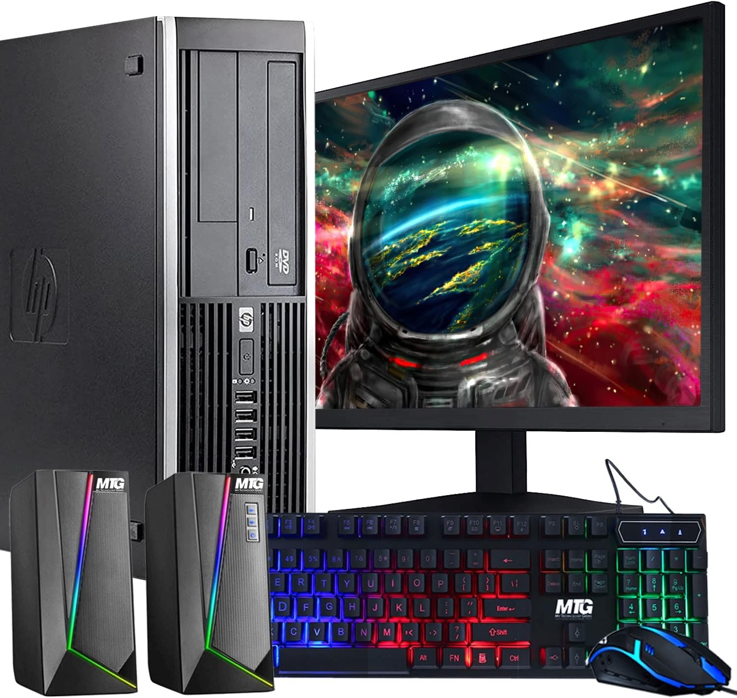 HP Elite Desktop Computer PC, 3.1 GHz, Intel Core i7, 16GB, RAM, 2TB HDD, MTG New 22 inch LED Monitor, RGB Speaker and Keyboard Mouse, WiFi, Windows 11 Pro (Renewed)