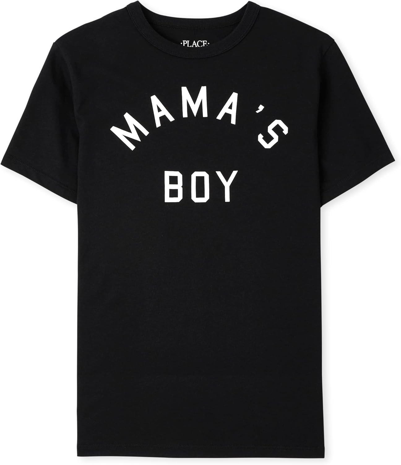 DESIGN — Features short sleeves, rib-knit crew neck and 'Mama's Boy' graphic design at front