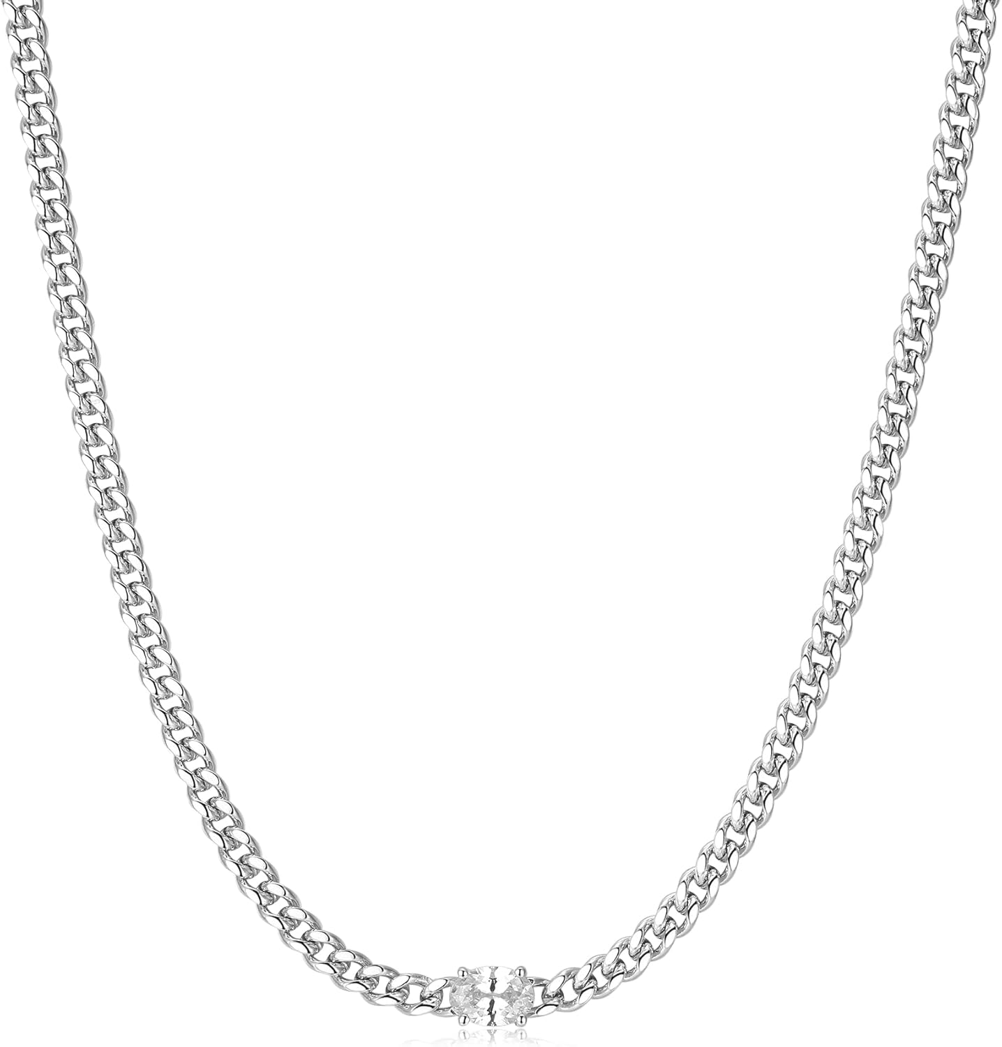❴♥Classic Cuban Necklace ♥ ❵ This 3.7mm wide 45cm curb chain necklace decorated with one 5*7mm oval CZ, Unique and Luxury. Strong and durable for daily wear yet not too thick for a comfortable fit. A chain that gives modern elegance to both casual and formal outfits, wear it solo for an everyday polished look or stack with other bracelets for a cool fashion statement.