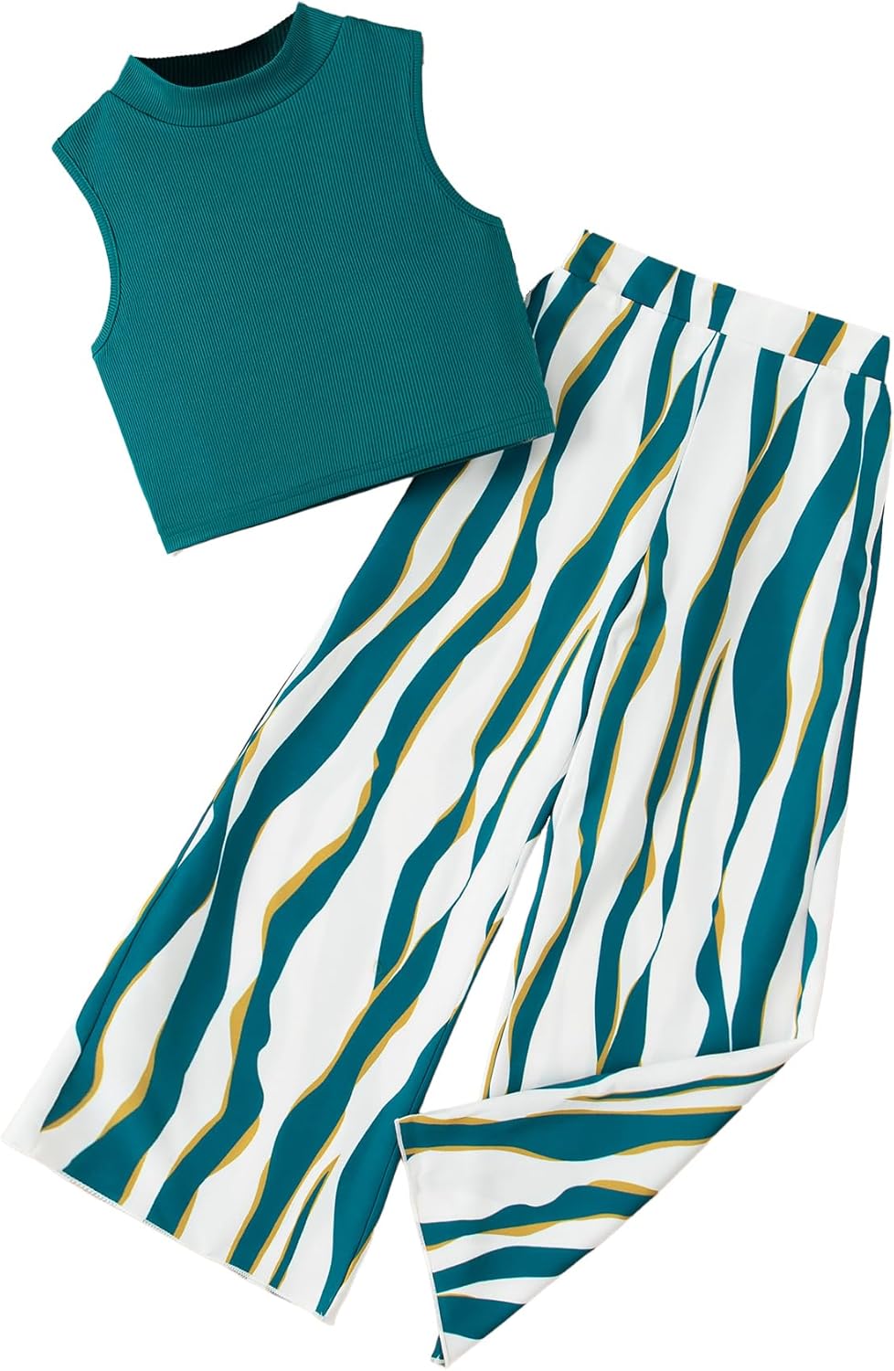 All-Season Design: The girls two piece outfits include solid ribbed crop tank top + printed wide leg pants, full of fashion sense. Elastic waist makes it more comfortable for girls to wear. This versatile outfit is perfect for all seasons, allowing your child to mix and match based on their needs throughout the year.