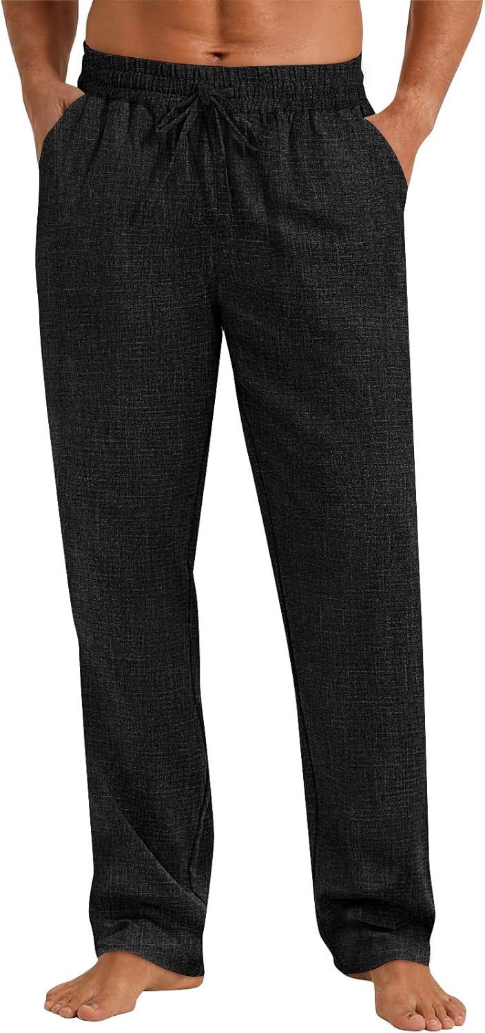 Features: Lightweight casual pants for men, two slant pockets and two back pockets, straight-legs and loose fit design offers a classic and versatile look. Elastic waistband with adjustable drawstring for easy on and off, ensuring convenience and flexibility throughout the day