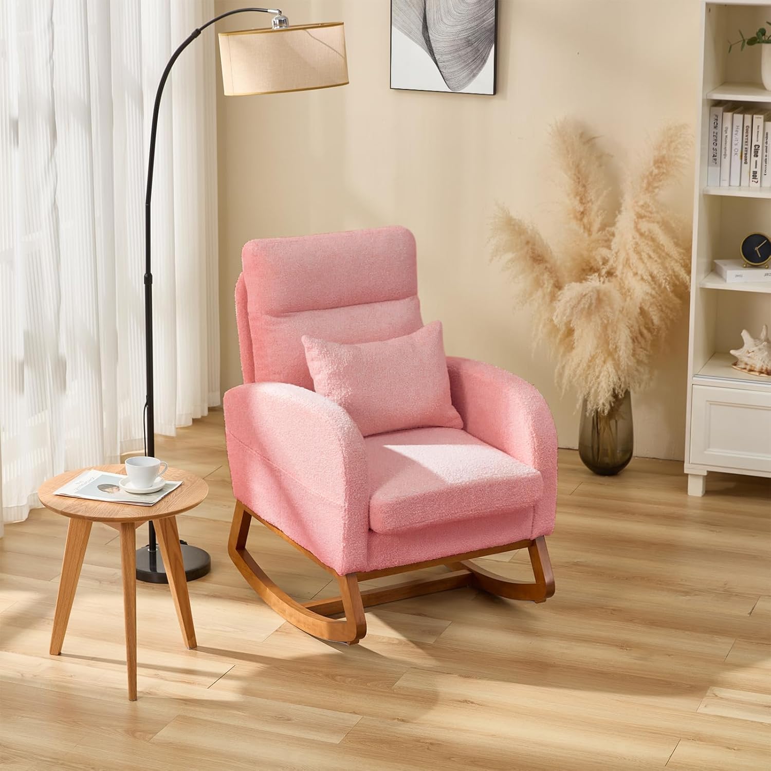 Comfortable Cushions: The backrest is 25.56 inches high to the seat, and the seat cushion is 5 inches thick. Both the high backrest and the thick seat cushion are filled with high - rebound sponge, which is soft and not easy to collapse. Whether used as a rocker for nursery or living room cozy rocking chair, it allows you to relax your body after a tiring day at work.