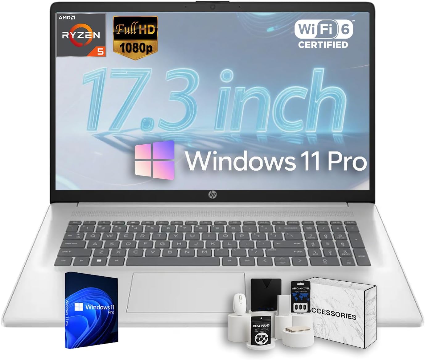 【🚀Immersive Big Screen】Bask in stunning clarity on HP 17.3” laptop’s FHD IPS display (1920 x 1080 | 300 nits). Slim-bezel and big screen design maximizes your view for spreadsheet modeling, creative projects, or binge-watching. Enjoy vibrant, crystal-clear images with 178°wide-viewing angles.