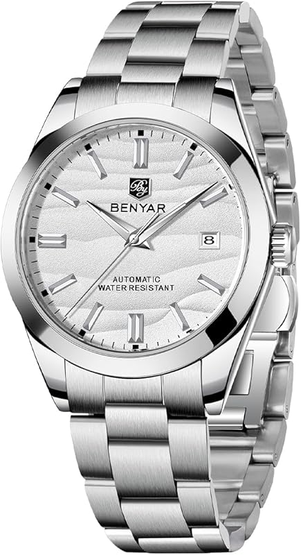 PAGRNE DESIGN BENYAR Automatic Watches for Men Analog Stainless Steel Mechanical Watch, 50M Waterproof Calendar Luminous Business Men's Wrist Watches