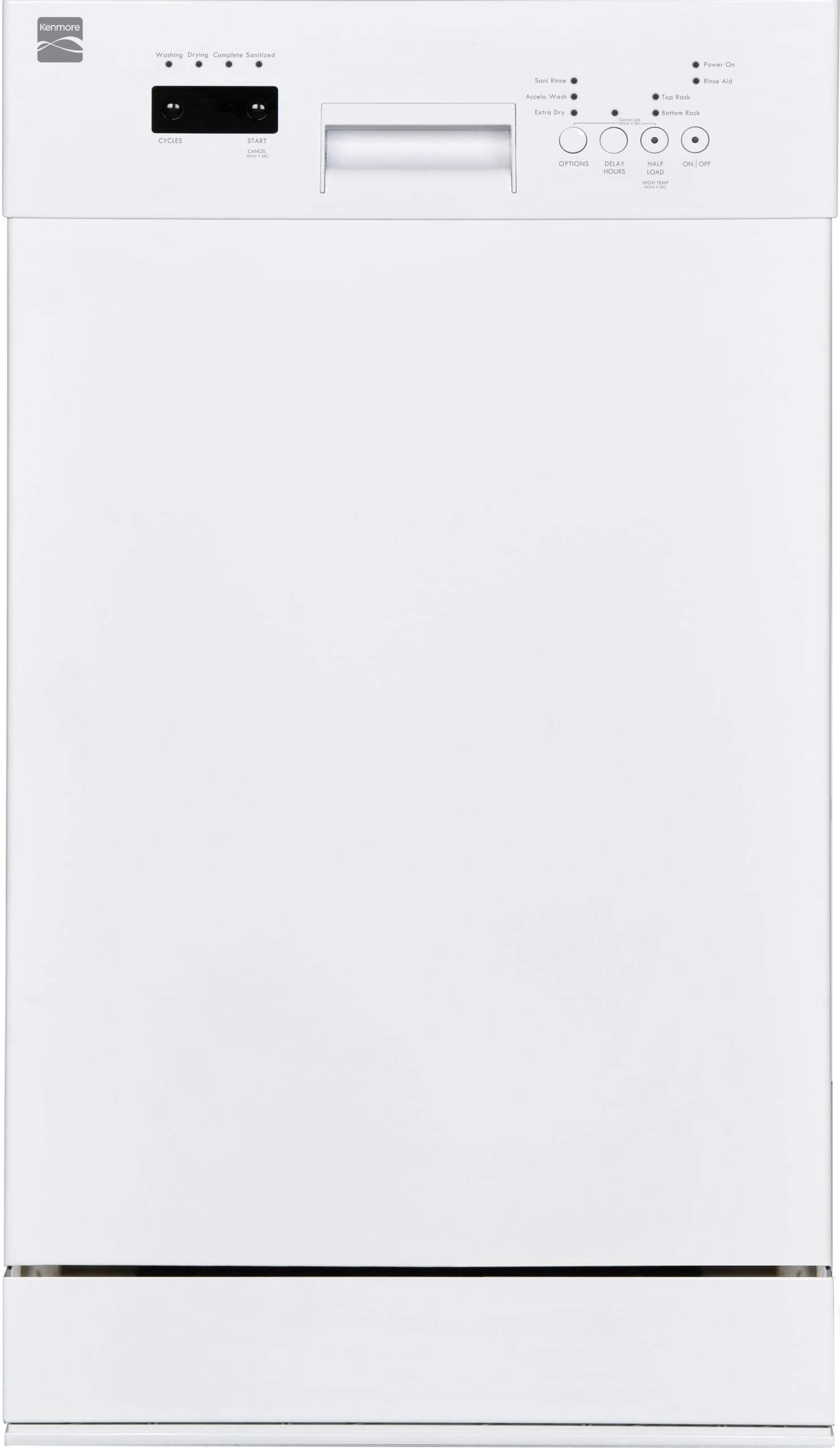 Kenmore 18" Built-in Stainless Steel Tub Dishwasher EasyFlex 3rd, SmartWash, UltraWash Plus, TurboDry, MoreSpace Adjustable Rack, Energy Star Certified, White