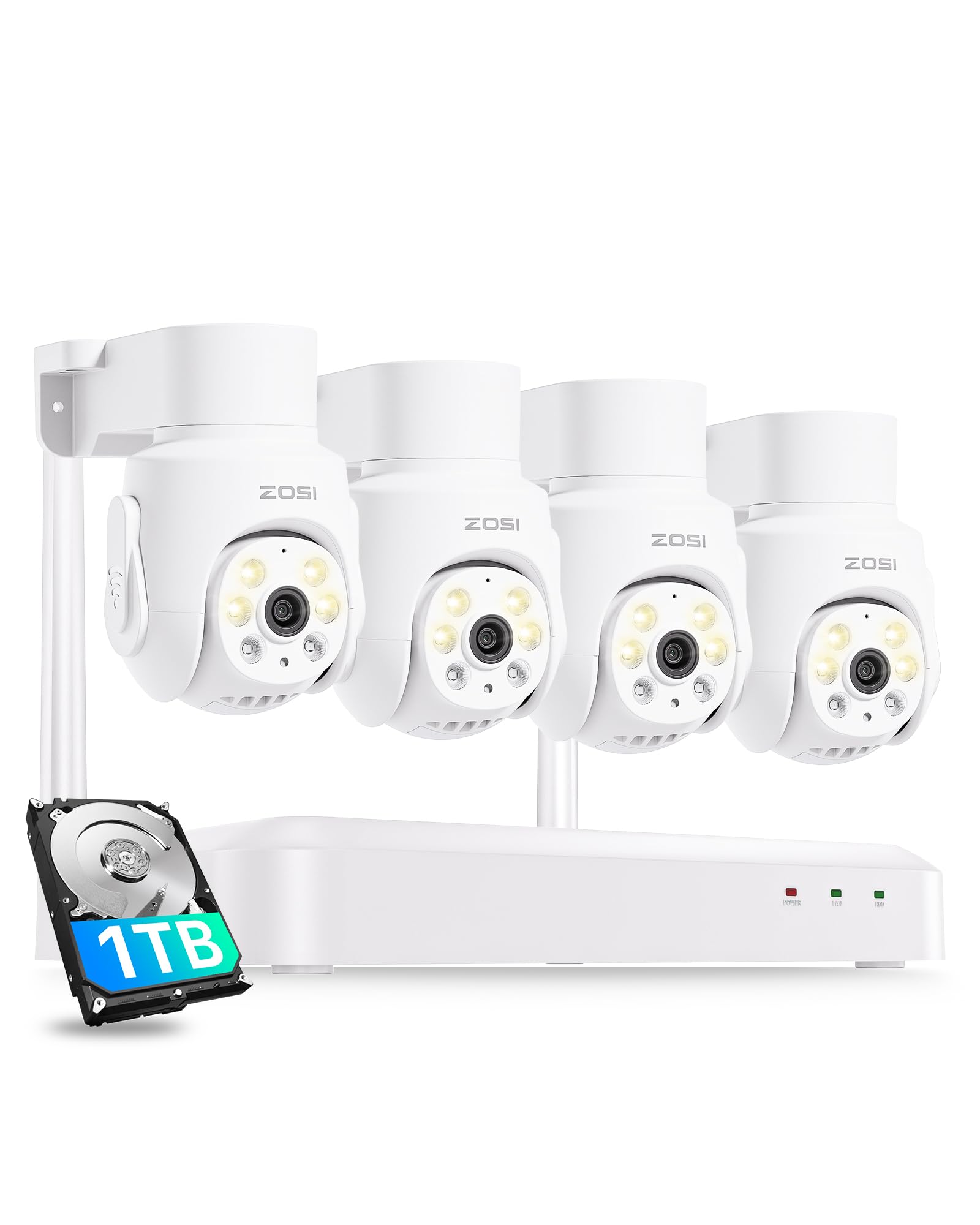 ZOSI 2 x C296 5MP 3K PoE PT Add-on Camera Outdoor with AI Face Human Vehicle Detection, Siren Alarm, Starlight Night Vision, Auto Track, 2-Way Talk, SD Card Storage, Only Compatible PoE NVR 2 PT PoE Cam