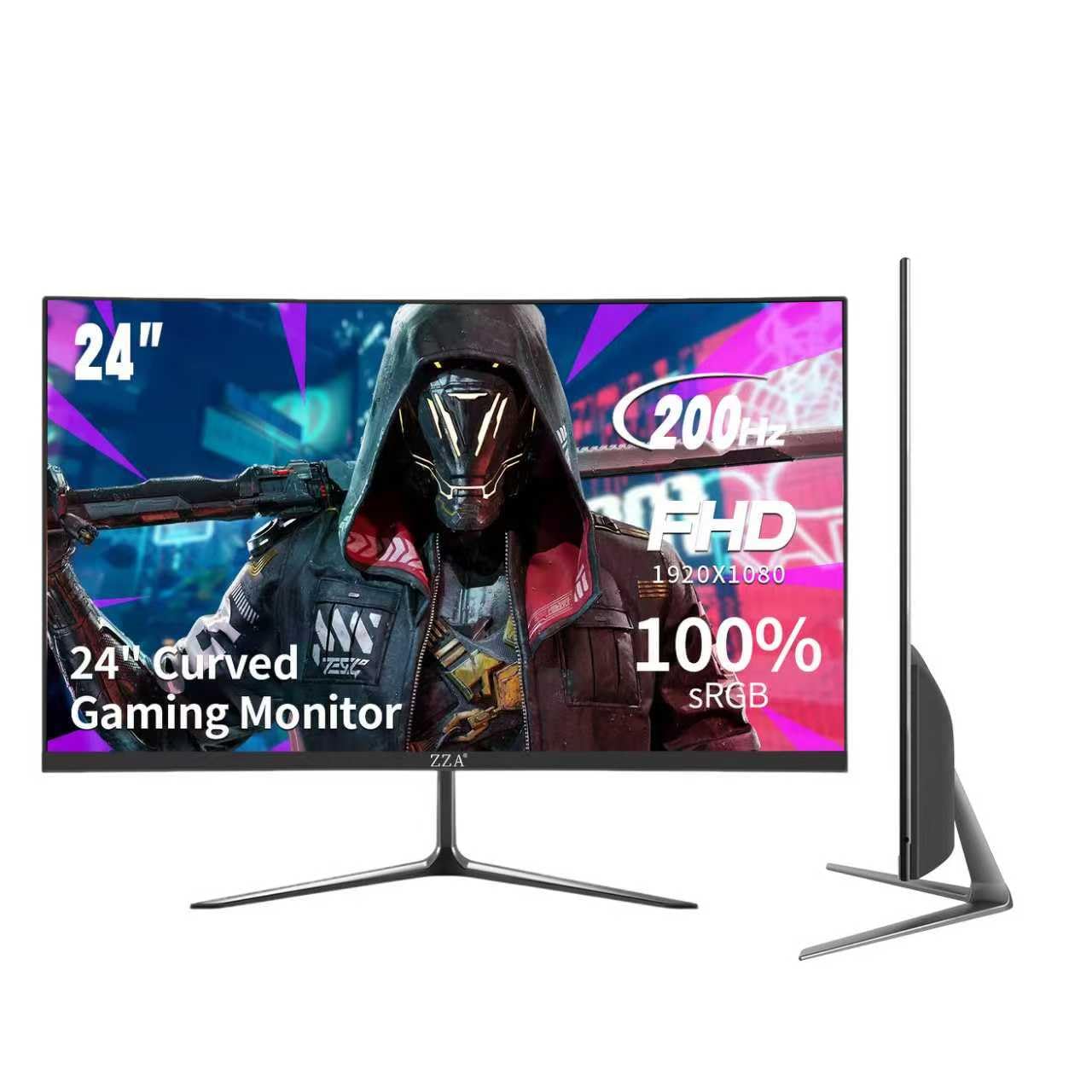 ZZA Monitor 24 Inch 200HZ,Computer Screen FHD 105% sRGB FreeSync,Frameless Full on Three Sides,Curved Monitor with VESA,HDMI,DP,Blue Light Filter,24 Inch Gaming Monitor for Home Office and Dormitory 24 inch 200HZ 1K