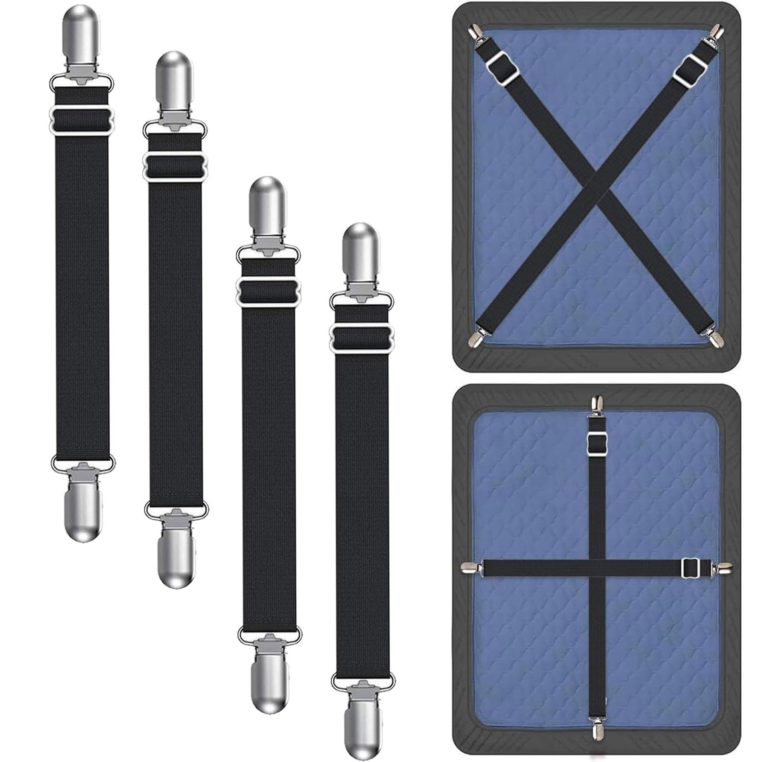 Magic Sofa Covers Holder Clips Couch Covers Holder Straps Adjustable from 10 to 60 inches (25-160cm) Elastic Straps for Sofa Covers (Pack of 4)