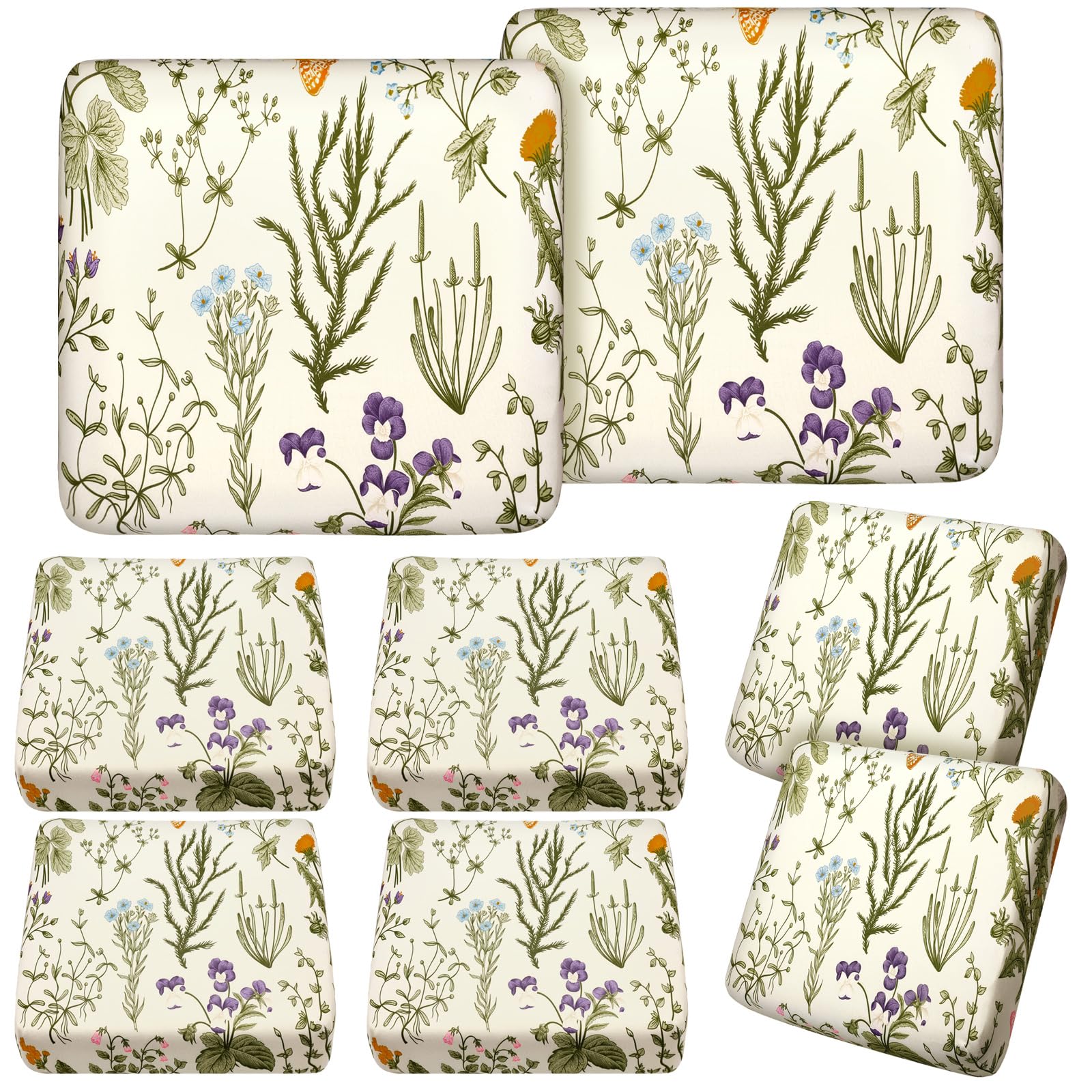 Hosuly 8 Pcs Spring Wildflower Sofa Cushion Cover for Patio Summer Floral Stretch Outdoor Sofa Seat Cushions Covers Tropical Flower Indoor Replacement Couch Slipcover Flexibility Chair Seat Cover Wildflowers