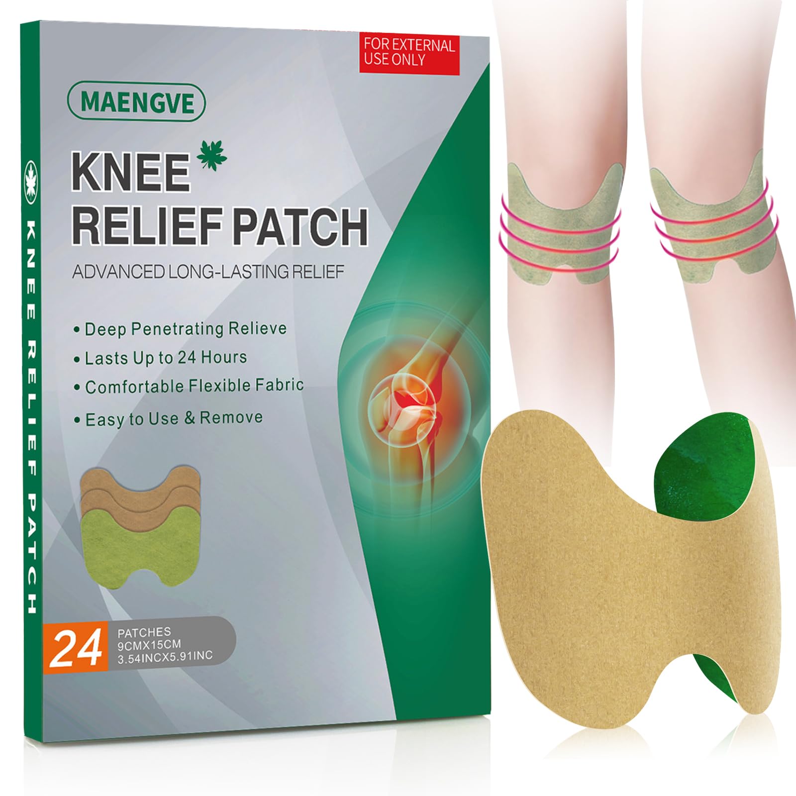 Knee Relief Heat Patches: 24 Count Natural Herbal Wormwood Patches for Arthritis & Bone-on-Bone Support - Long-Lasting Relief for Muscle and Joint Discomfort Knee Patches 24 Count - Heat