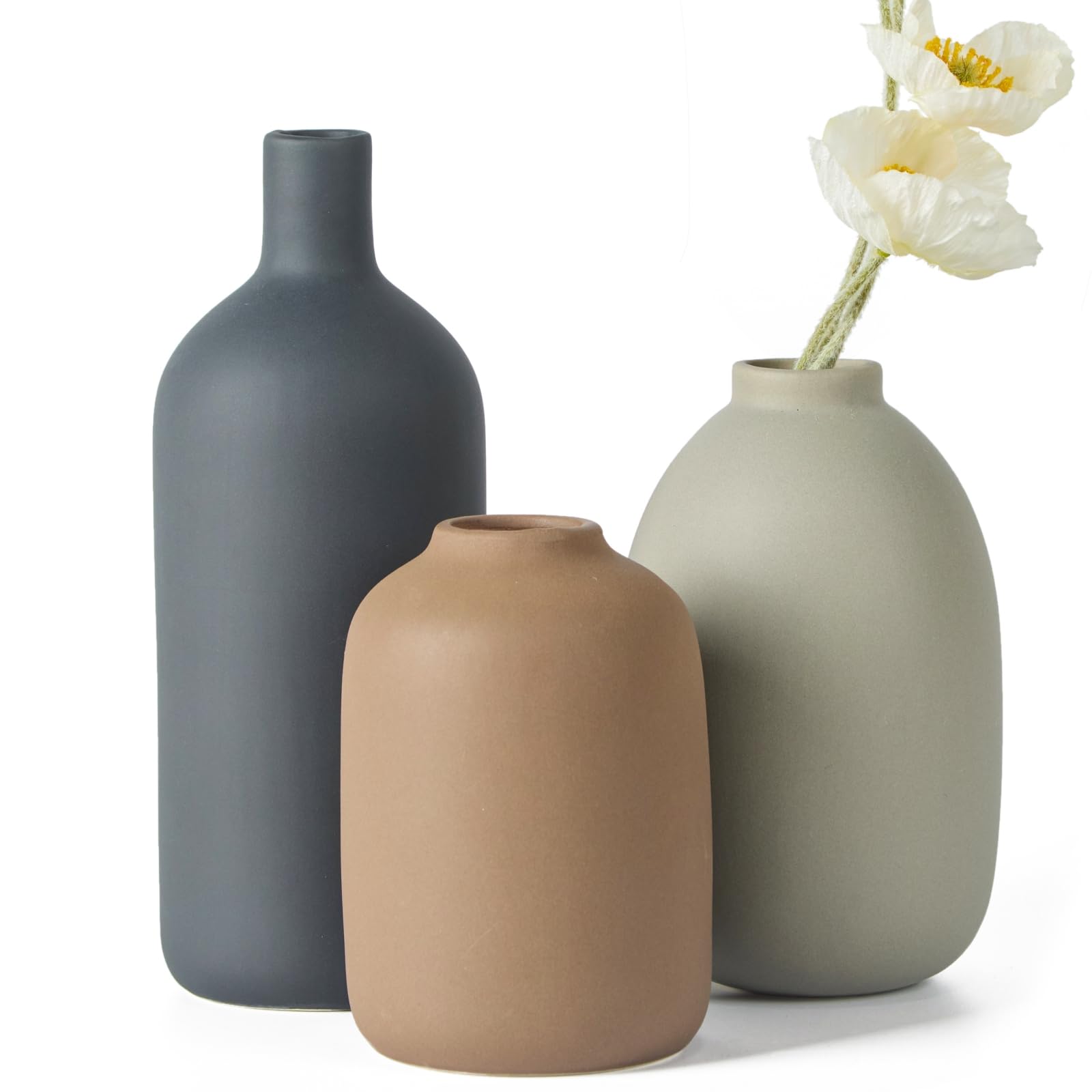 Ceramic Vase Set of 3,Neutral Modern Vases for Bouquet Pampas Grass Dried Fresh Flowers,Rustic Home Decor for Living Room,Bedroom Entryway