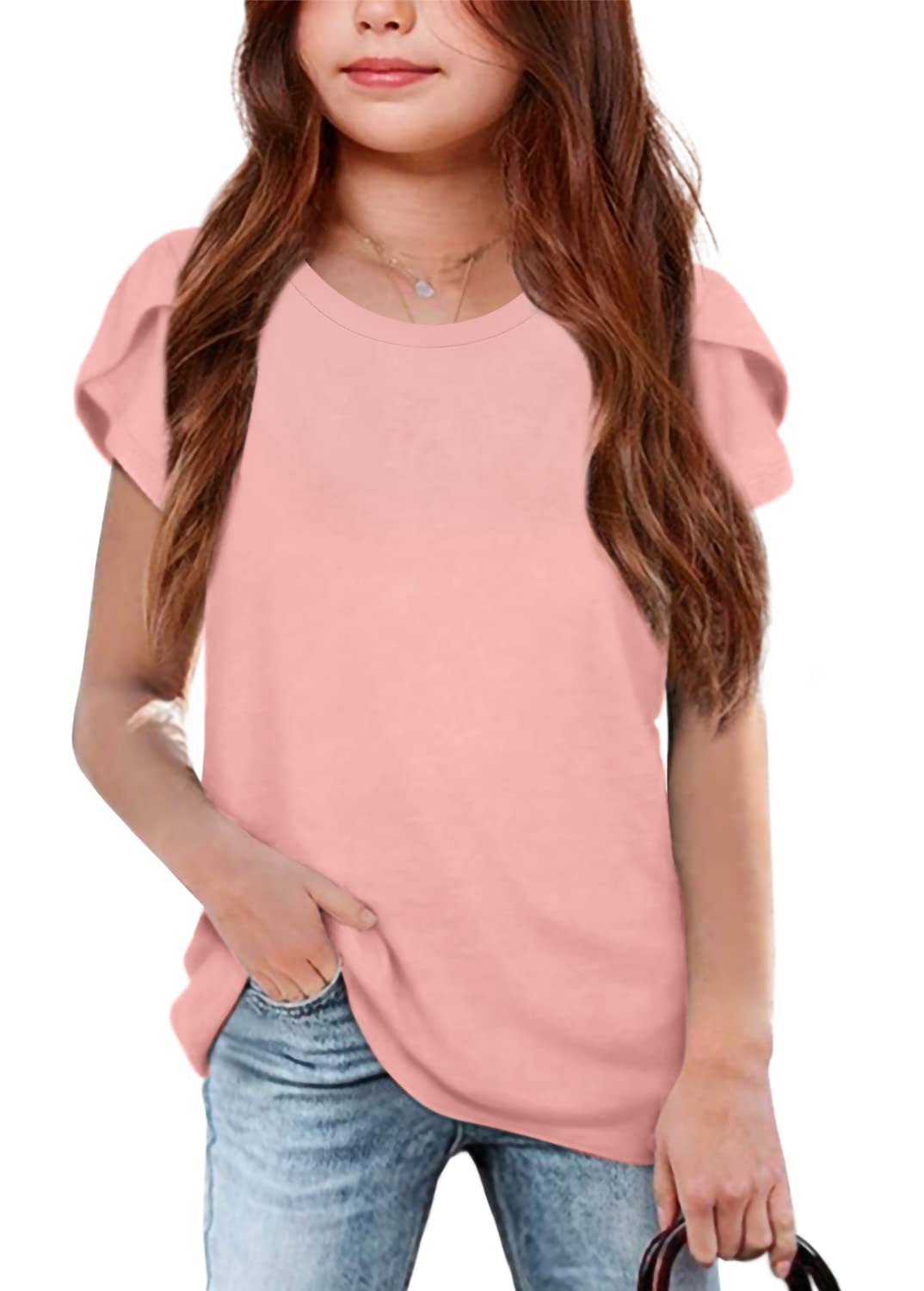 Goranbon Girls' Summer T Shirts Crewneck Petal Short Sleeve Cute Casual Tops
