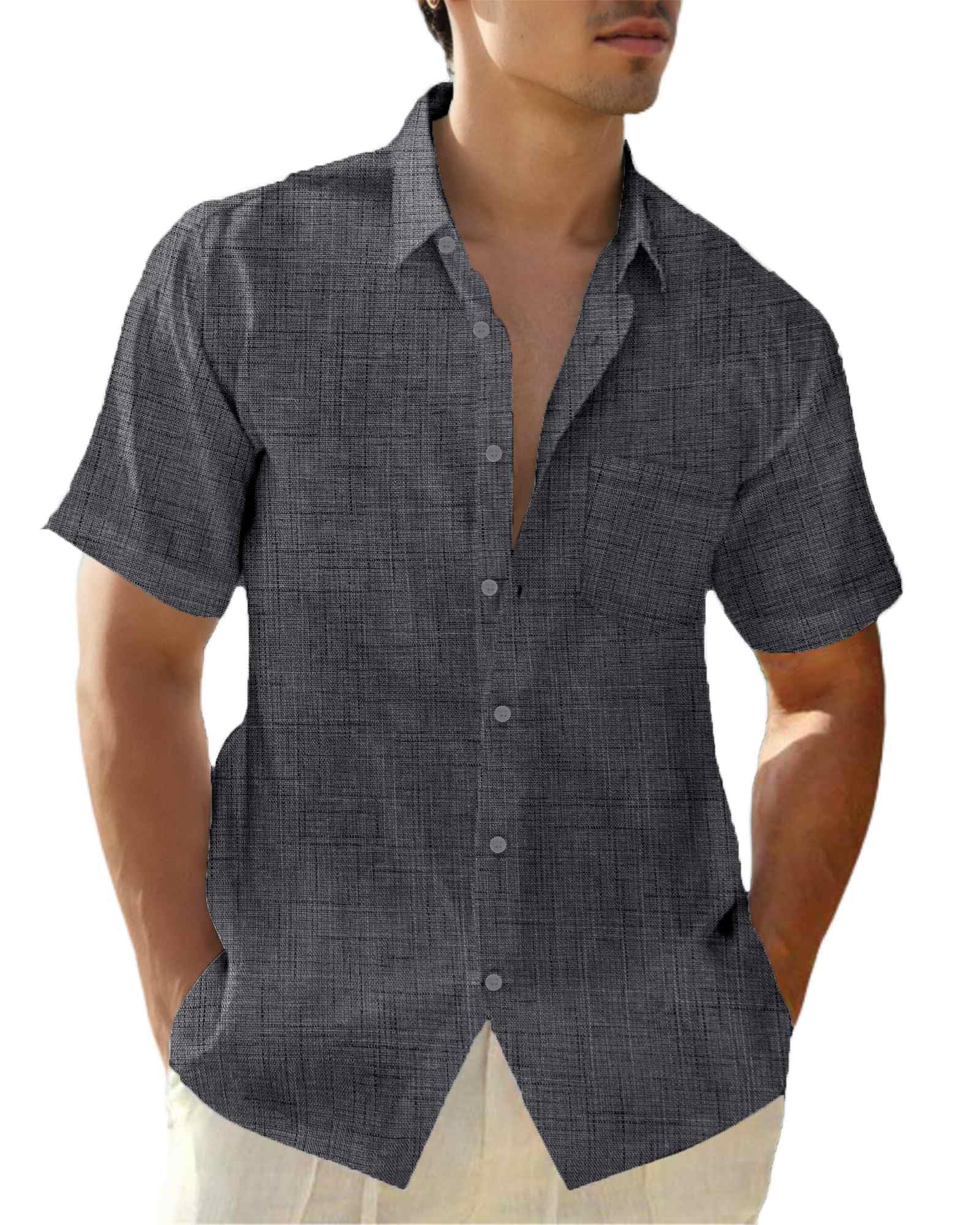 Mens Linen Shirts Gradient Short Sleeve Casual Shirts Button Down Shirt Beach Summer Wedding Vacation Shirt for Men 3X-Large A2 Dark Gray