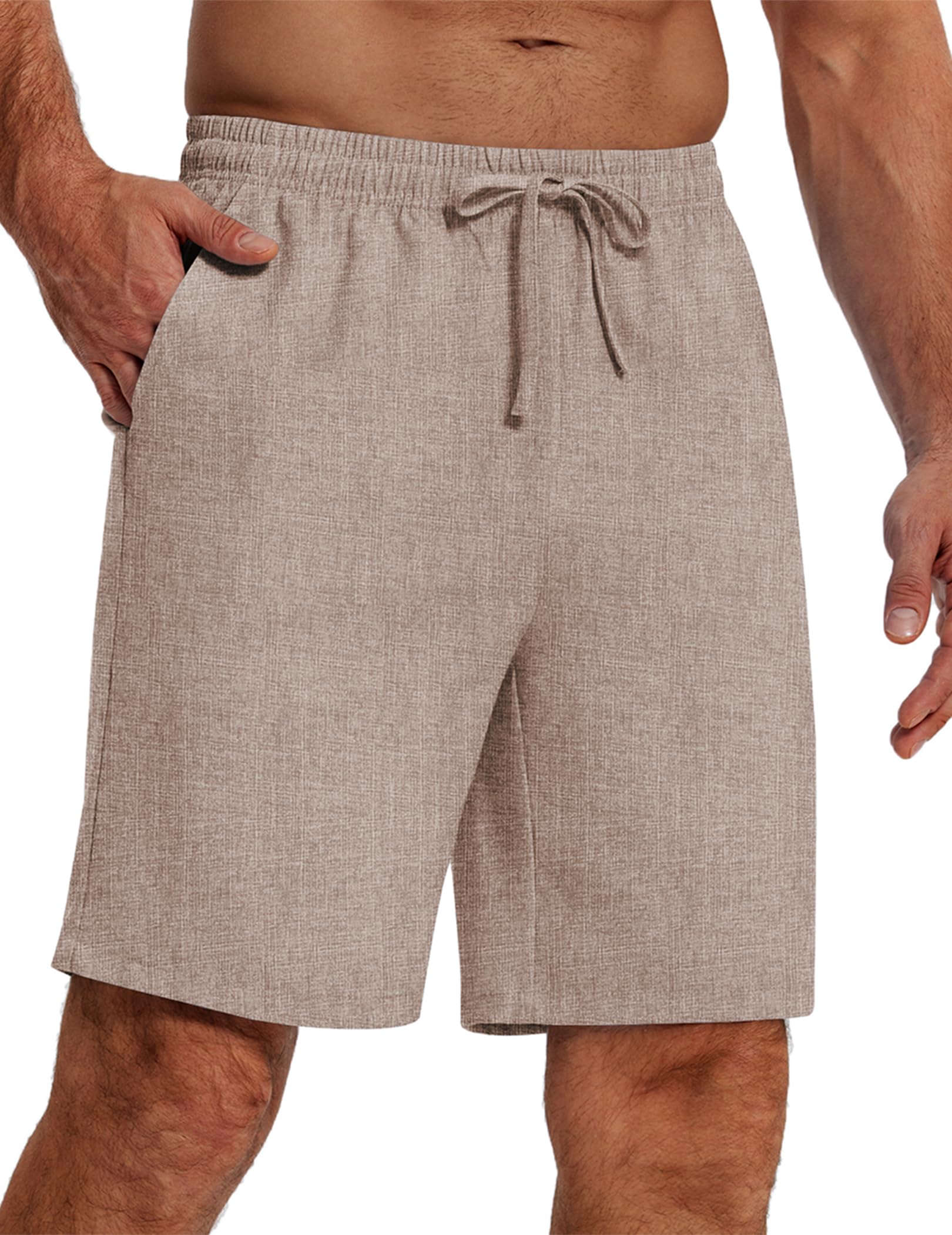 COOFANDY Mens Casual Summer Beach Linen Shorts 9 Inch Lightweight Drawstring Elastic Waist Shorts with Pockets