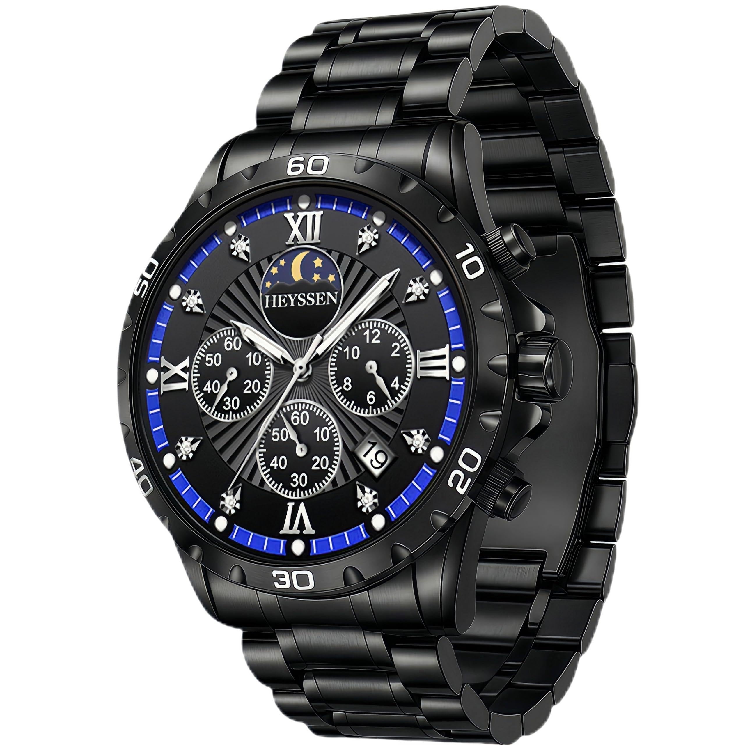 SAPPHERO Men's Watches Stainless Steel Chronograph Waterproof Quartz-Business Casual Dress Watch for Men Luminous Date Gold/Silver/Black Design-Easy-to-Read Luxury Dial-Leather Unique Elegant Gift Blue Strap/Black blue Case