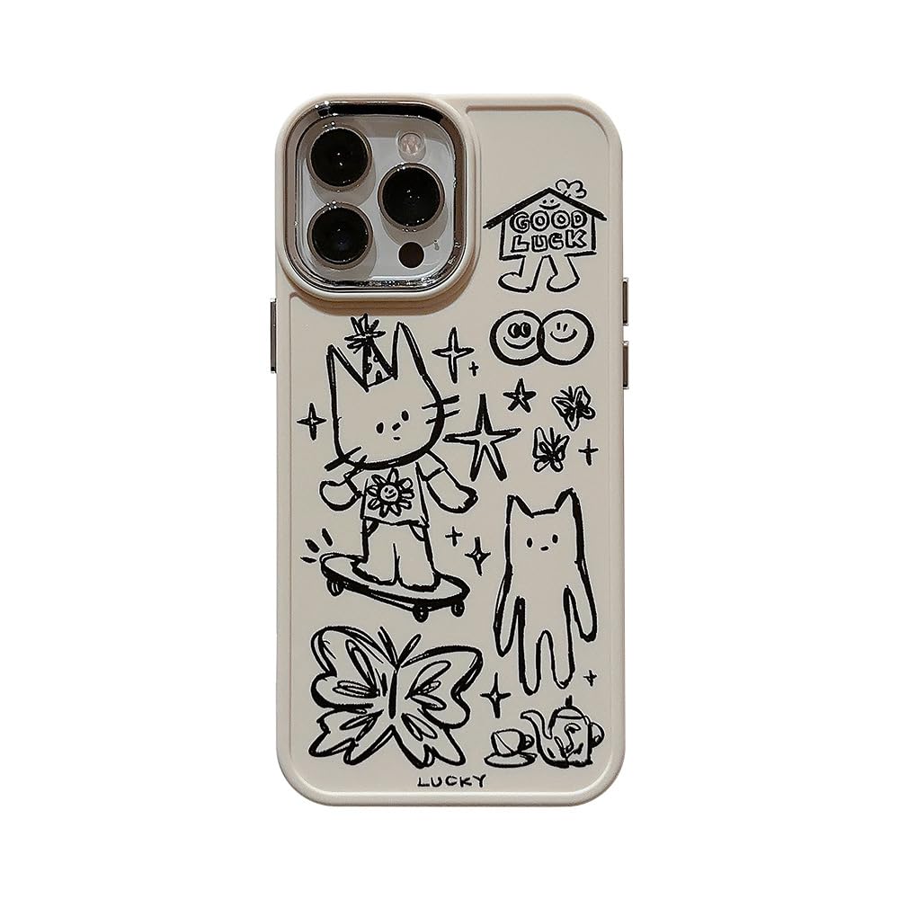 Designed for iPhone Case, Cute Cat Butterfly Star Lucky Line Drawing Soft Phone Case (White,for iPhone 14 Pro) White iPhone 14 Pro