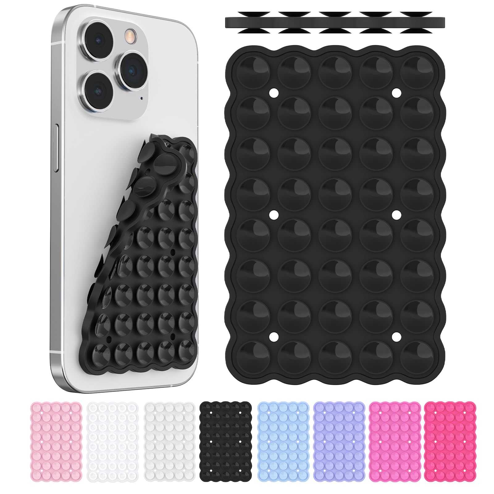 Silicone Suction Cup Phone Mount Double-Sided, Sticky Grip Suction Phone Case Mount for iPhone & Android, Hands-Free Phone Accessories for Tiktok Videos & Selfies (Black)