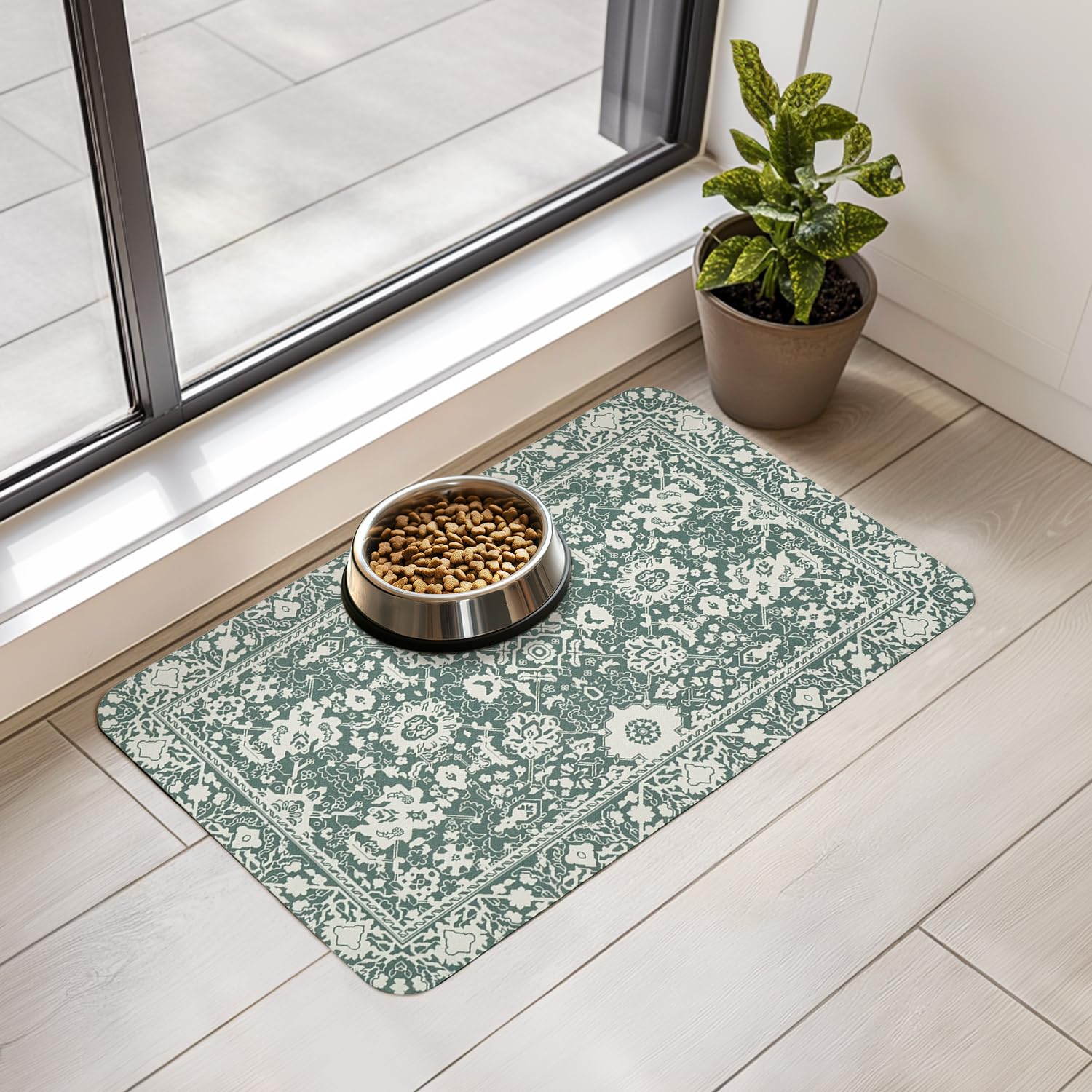 Dog Food Mat for Floors Waterproof Quick Dry Pet Placemat Cat Feeding Bowls Mats for Food and Water, Eco-Friendly Dog Accessories Diatomite Pets Supplies 12" X 20" Vintage - Green S(12"×20")