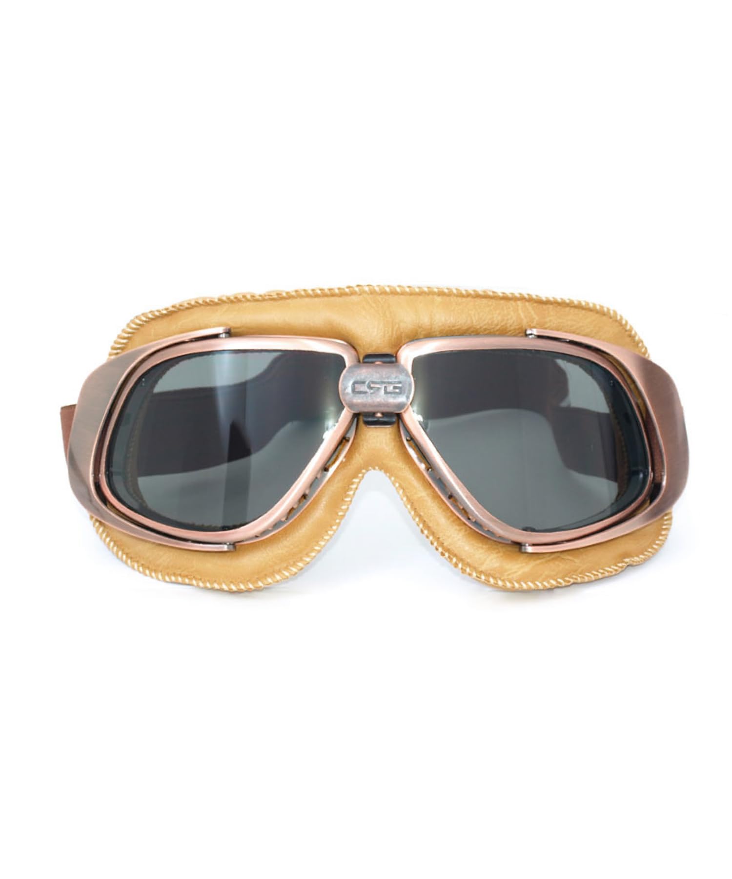 CRG Sports Motorcycle Goggle Vintage Aviator Pilot Style Cruiser Scooter Motocross Goggles for Men, Women, Adults Smoke Lens Brown Padding Copper Frame