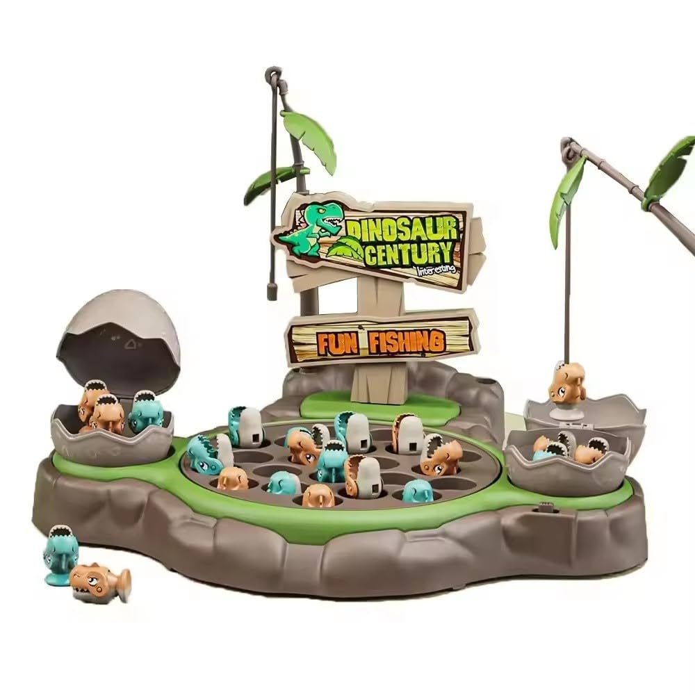 Dinosaur Theme Pop Up Magnet Fishing Game for Kids, Toy Pole and Rod Fish Game Rotating with Music, Magnetic Dino Egg Fishing Toy, Boys & Girls 3-8 Years