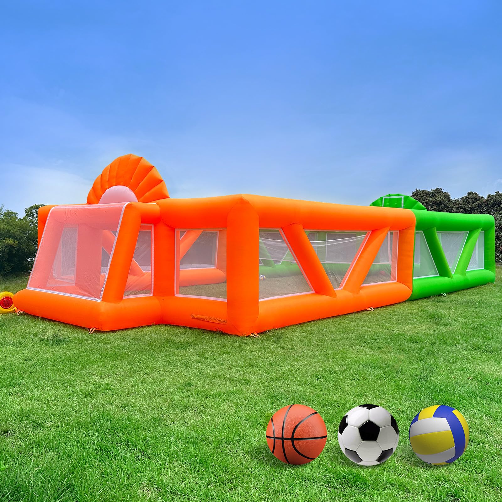 OZIS 40Ft Inflatable Sports Court with 680W Blower 3-in-1 Inflatable Soccer Field & Volleyball Field & Basketball Hoop Inflatable for Backyard, School Events, Team Training Multi-Game Arena