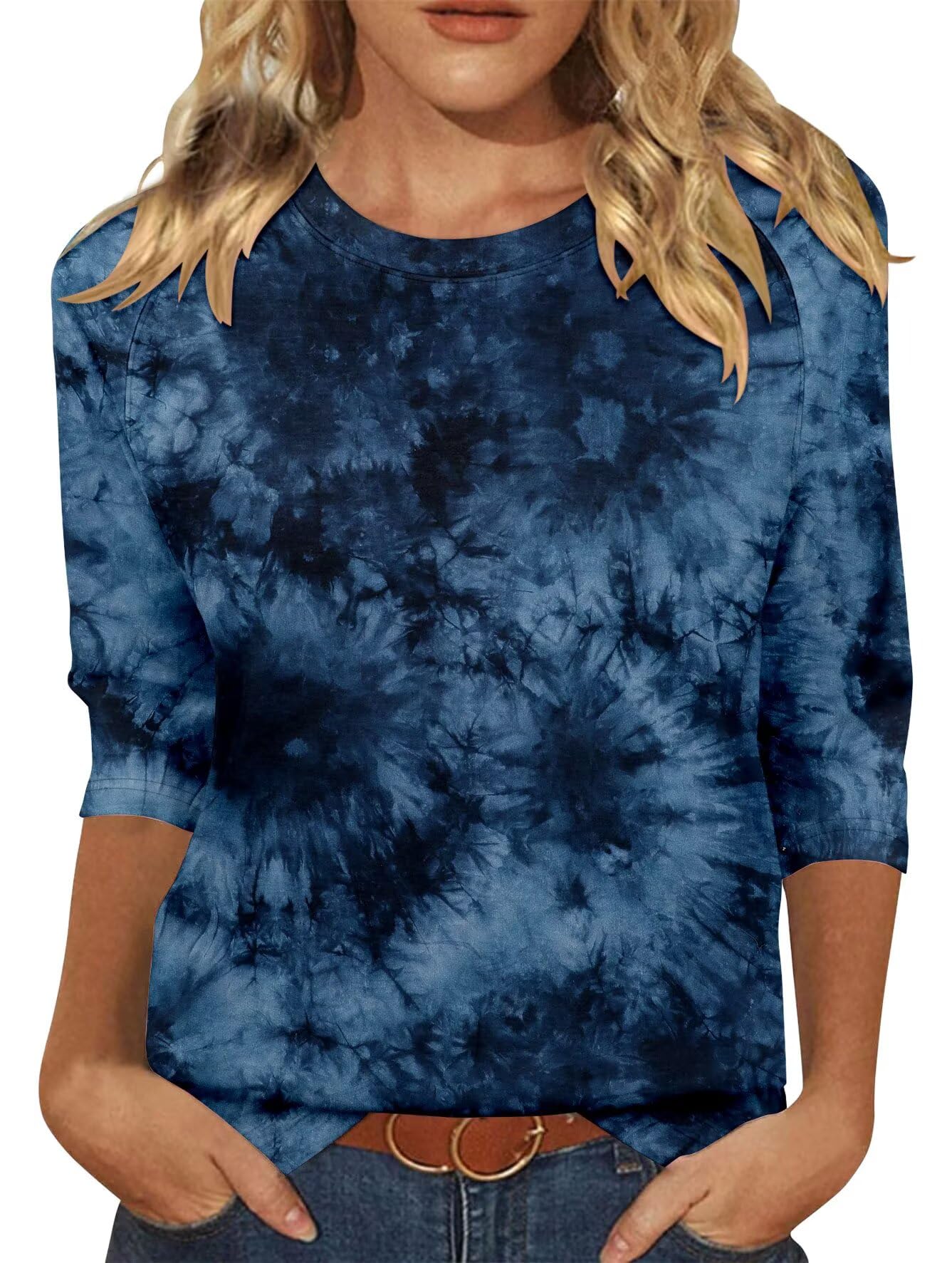 WEESO Womens Summer Tops Trendy 2025 Cap Sleeve T Shirts Crew Neck Pleated Front Clothes Fashion B - Tie-dye Flower Large