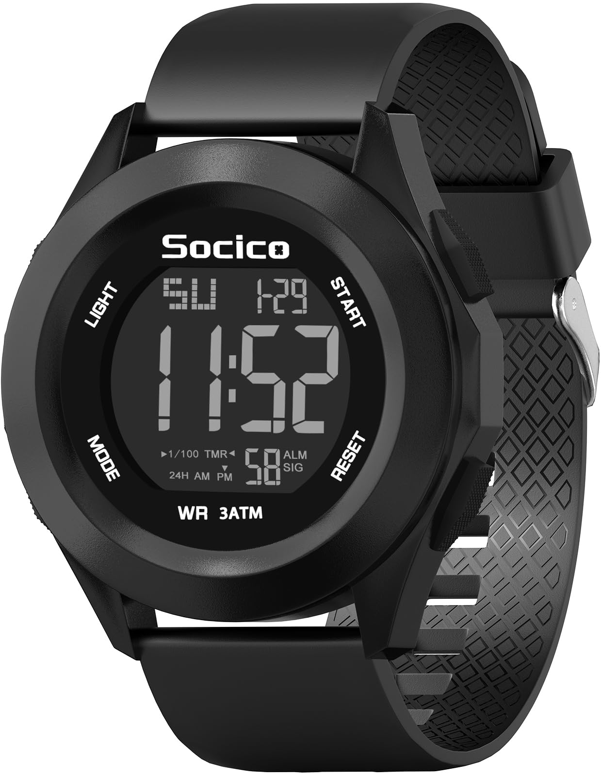 SOCICO Digital Watch 3ATM Waterproof with LED Back Light/Alarm/Date/Stopwatch, Outdoor Sport Multifunctional Digital Wrist Watches for Men Women Black