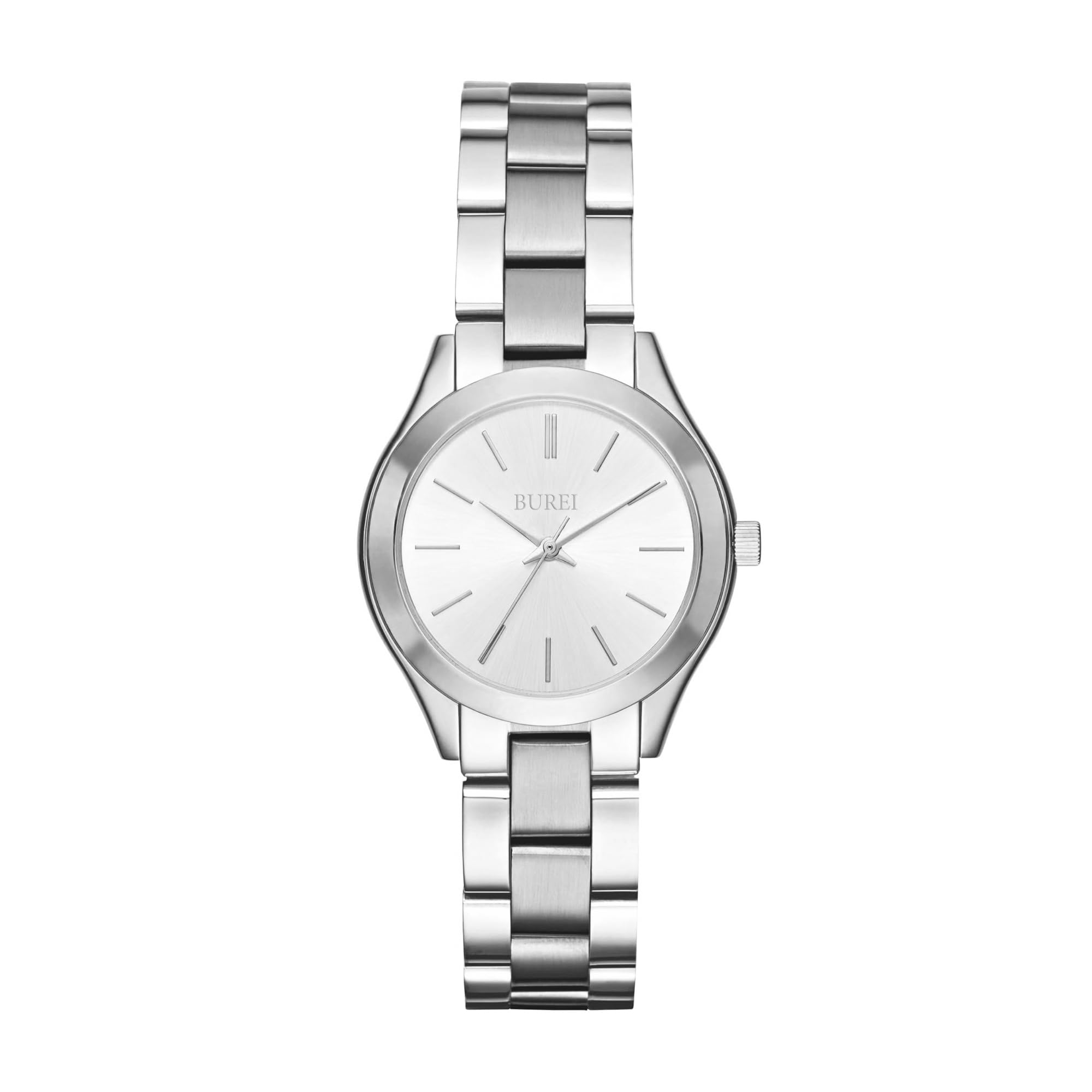 BUREI Women's Wrist Watch Easy Read Dial, 24 Hour with Second Hand,Nurse Watch for Women with Stainless Steel Band. White-Silver