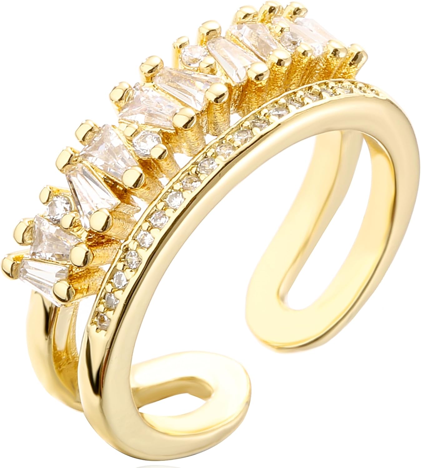 AIKAITUO 14K Gold Plated French Romantic Sparkle Set Zircon Cross Opening Adjustable Women's Fashion Ring Holiday Gift transparent