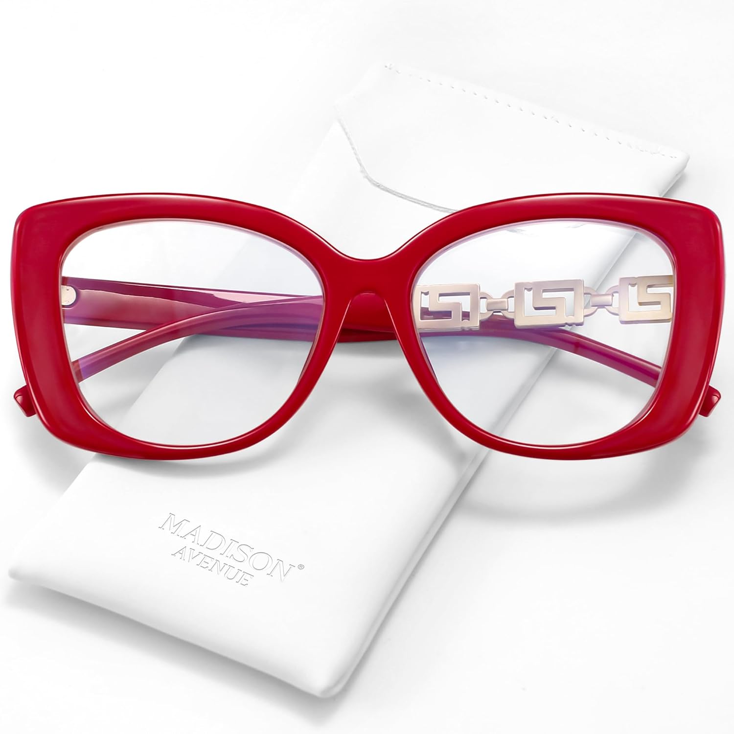 【Advanced Blue Light Blocking Lens】Madison Avenue oversized anti blue light glasses for women could filter harmful blue light and glare from digital screens such as computers, phones, and TVs. They maintain HD clear vision with less color distortion, promote better visual comfort, and help you achieve improved sleep.
