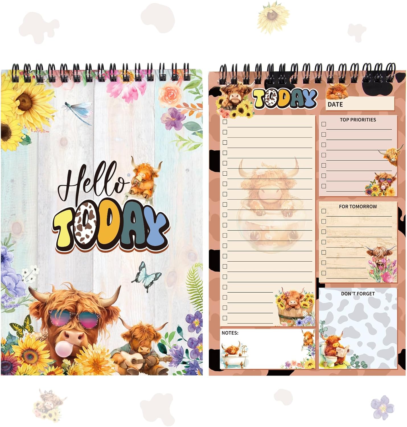 To Do List Notepad - Highland Cow Spiral Memo Pads Work Planner Reminder Daily Planner Pad for Desk Accessories Office Supplies Work School,80 Sheets Highland Cow-80