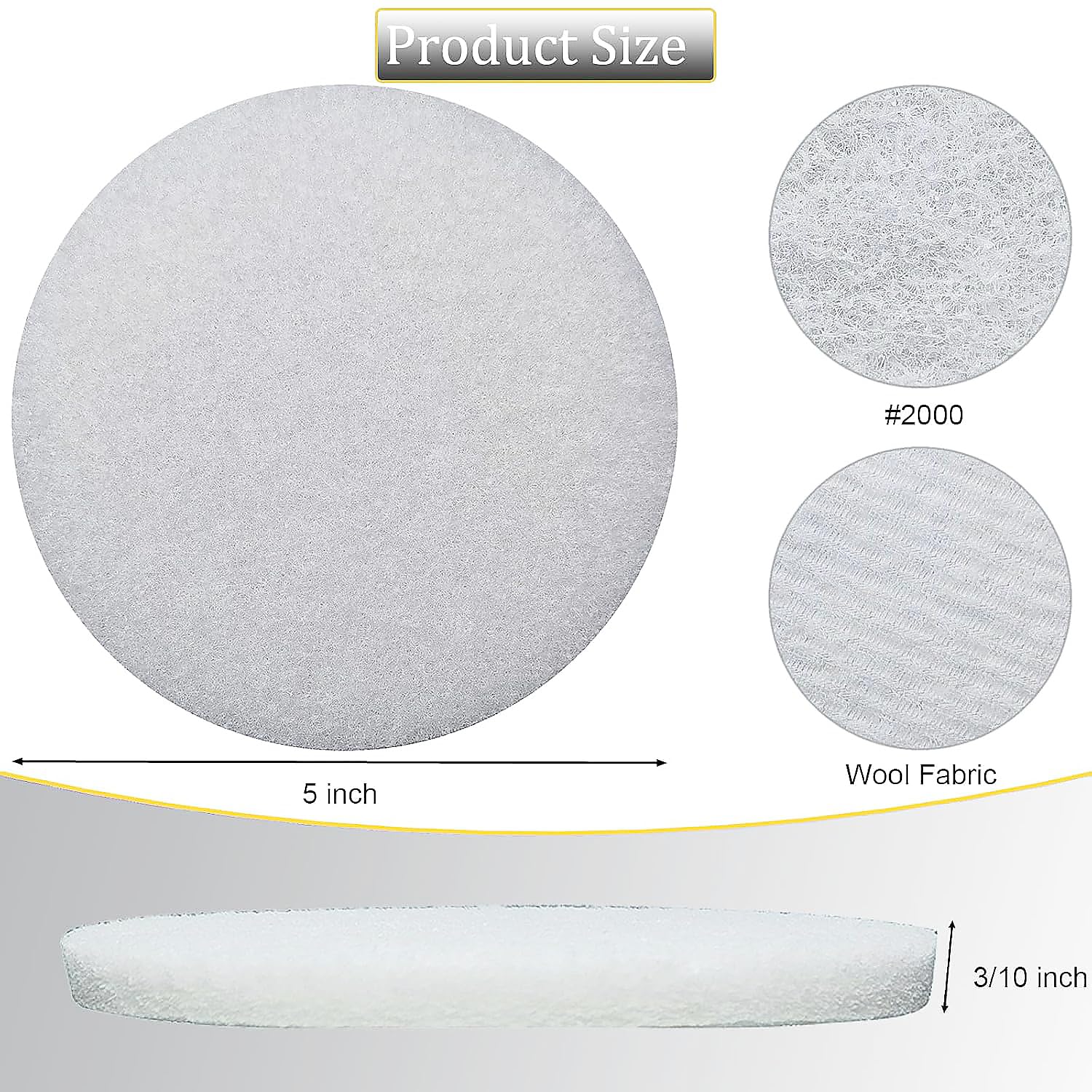 Optimal Dia Size&Grit: The scouring pads possess 5-inch dia and 0.3-inch thickness, 2000 grits, be it for light cleaning or heavy-duty scrubbing.