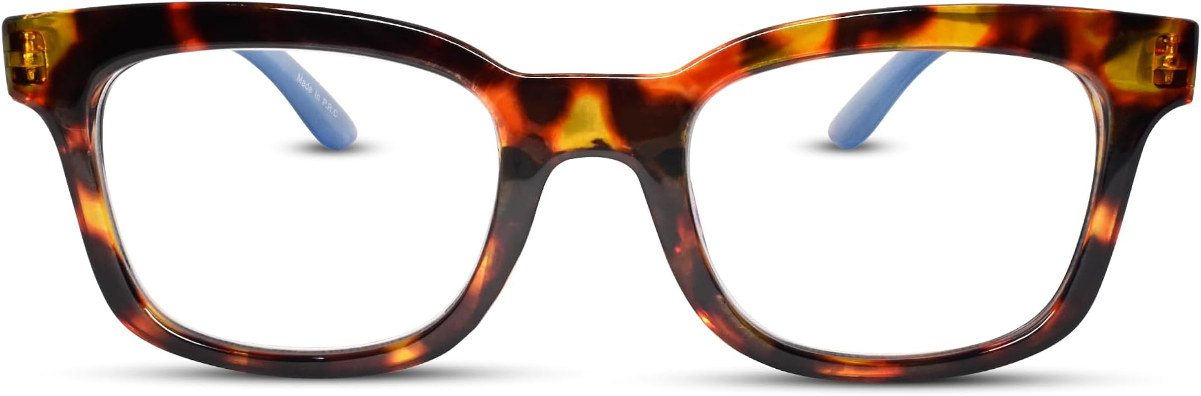 2SeeLife Wide Reading Glasses for Women – Medium-Large Fit, Thick & Sturdy Frame, Spring Hinges, Premium Designer Readers, Tortoise Blue, +1.25