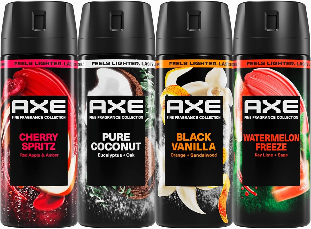 AXE Fine Fragrance Collection Premium Deodorant Body Spray for Men - Variety Pack - Blue Lavender, Aqua Bergamot, Golden Mango, & Black Vanilla - Pack of 4 72H Odor Protection, Aluminum Free, 4 oz