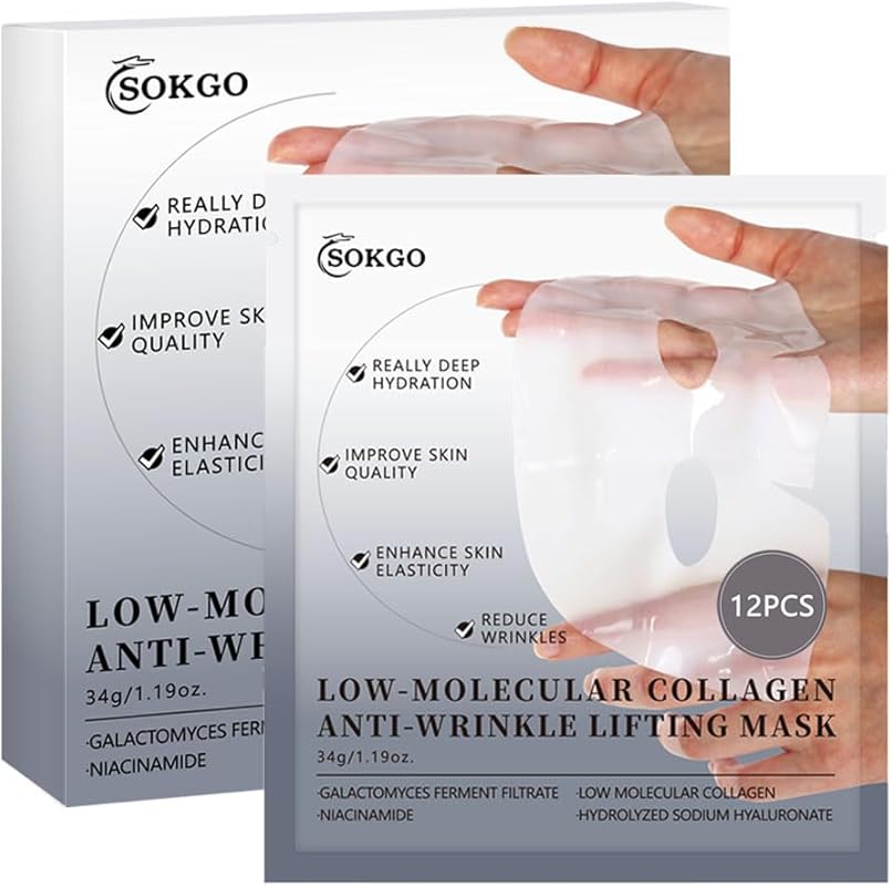 Low Molecular Weight Collagen Overnight Hydrogel Mask, Enhances Skin Elasticity, Reduces Pores, Transforms from White to Transparent Upon Absorption Skin Care Treatment.