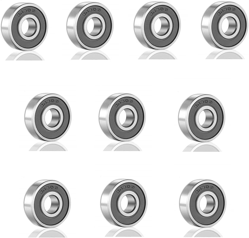 SHKI [10 Pack] 608 2RS Ball Bearings – Bearing Steel and Double Rubber Sealed Miniature Deep Groove Ball Bearings for Skateboards, Inline Skates, Scooters (8mm x 22mm x 7mm)