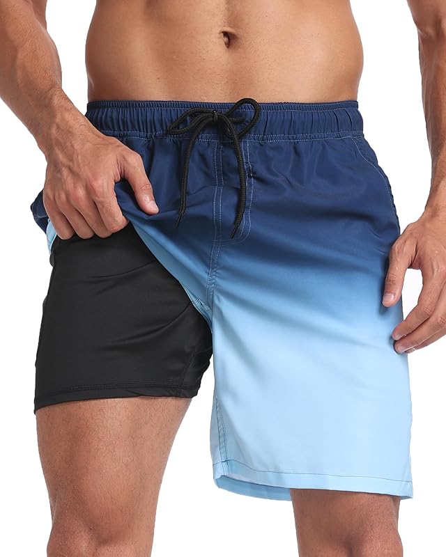 BLATIAL Mens Swim Trunks 7 Inch Quick-Dry Bathing Suit Men 2 in 1 Swimsuit Beach Shorts with Compression Liner Pockets