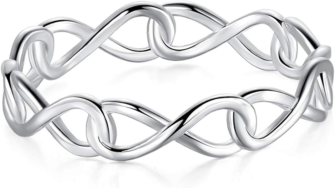 BORUO Twisted Infinity Celtic Knot Ring - 925 Sterling Silver Rings For Women - Knot Ring - Infinity Shape Cubic Zirconia Ring - 925 Infinity Sterling Silver Rings for Special Occasions, Stackable, 1.7mm, Size 4-12