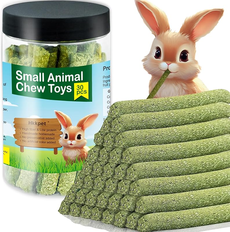 Timothy Hay Sticks for Rabbits & Guinea Pigs - 100% Natural Handmade Chew Treats for Dental Health, 30 Count Small Animal Treats for Chinchillas, Hamsters