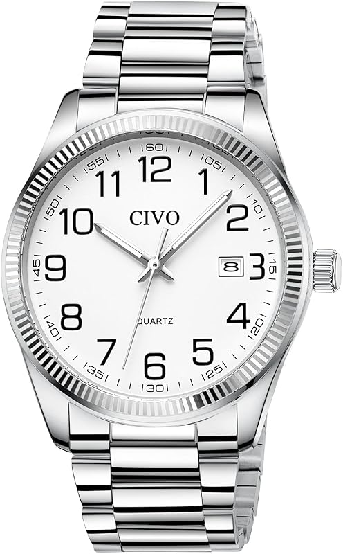 CIVO Analog Wrist Watches for Men: Waterproof Stainless Steel Mens Watches - Silver Watch with Easy Read Dial Men's Watch for Gift