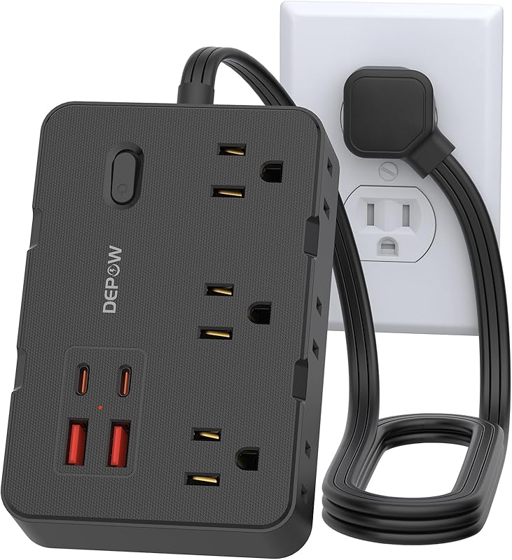DEPOW Power Strip, 24 AC Outlets (1875W/15A) with 6 USBs (2 USB-C Ports), ETL Listed, Surge Protector (3,400 Joules), 8 Ft Heavy Duty Flat Plug Extension Cord, Wall Mountable for Home, Office, Black