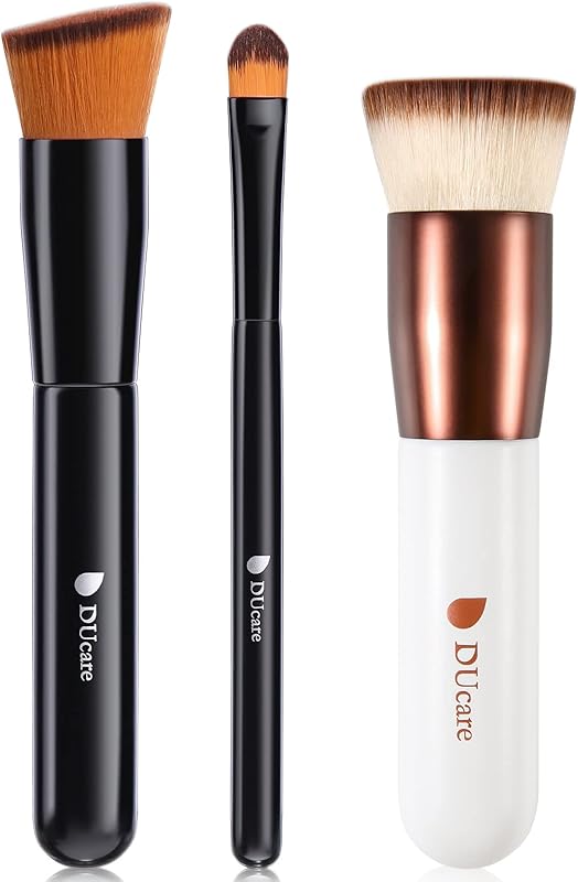 DUcare Flat Top Kabuki Foundation Brush + Angled Kabuki Brushes + Concealer Brushes