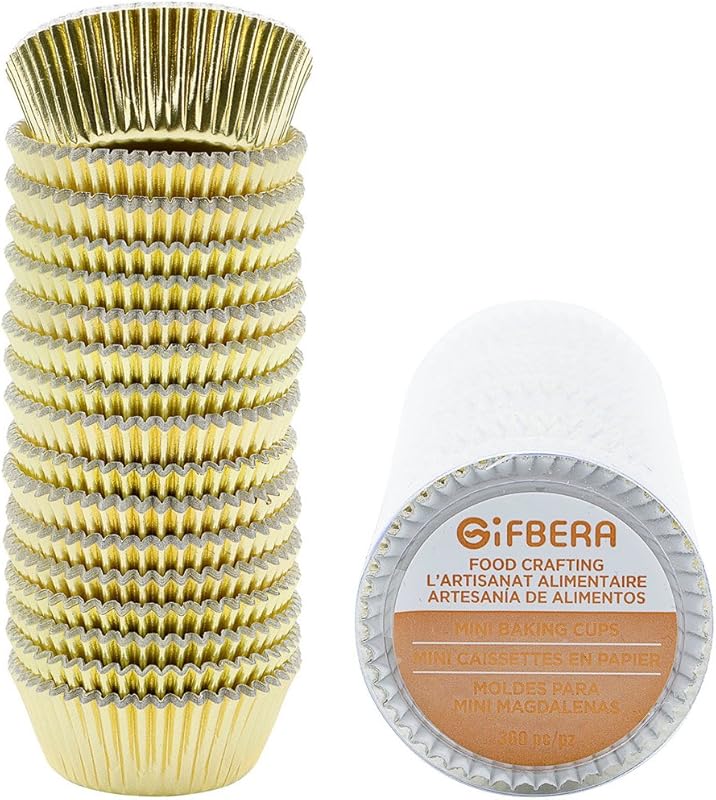 Gifbera Mini Foil Baking Cups Gold, 300-Count Bright Foil Paper Gold Cupcake Liners Mini Size