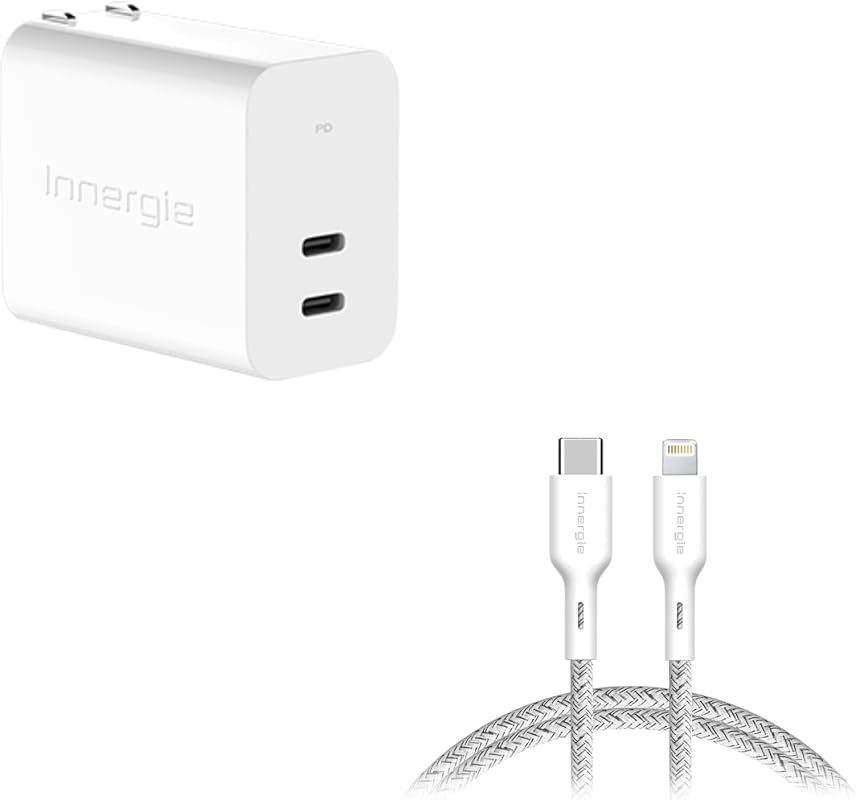 Innergie 63W PD3.0 QC4.0 PPS Dual-Port USB C Wall Charger and USB C to Lightning Cable Apple Mfi Certified 3A Charging Cable