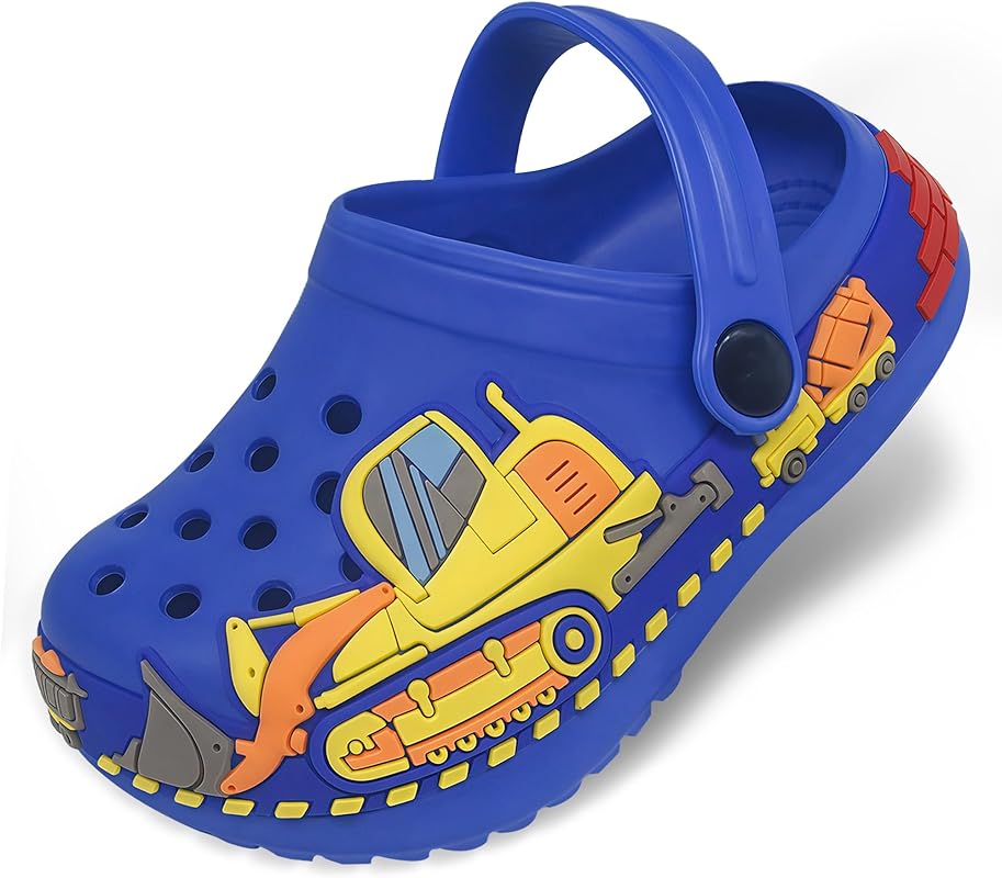 JeathFea Toddler Girls Boys Clogs Cute Cartoon Front Loader Pattern Garden Clogs Children Little Kids Slip on Slides Sandals Slippers Indoor Outdoor Shower Beach Pool Water Shoes