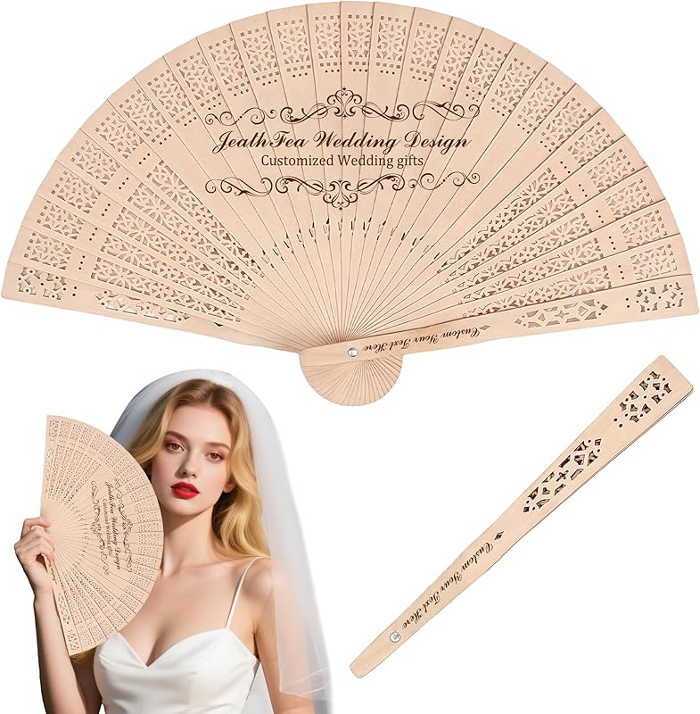JeathFea 100Pcs Personalized Wedding Fans Sandalwood Folding Hand Fans Wedding Party Favor Abanicos De Mano Wedding Fans for Guests